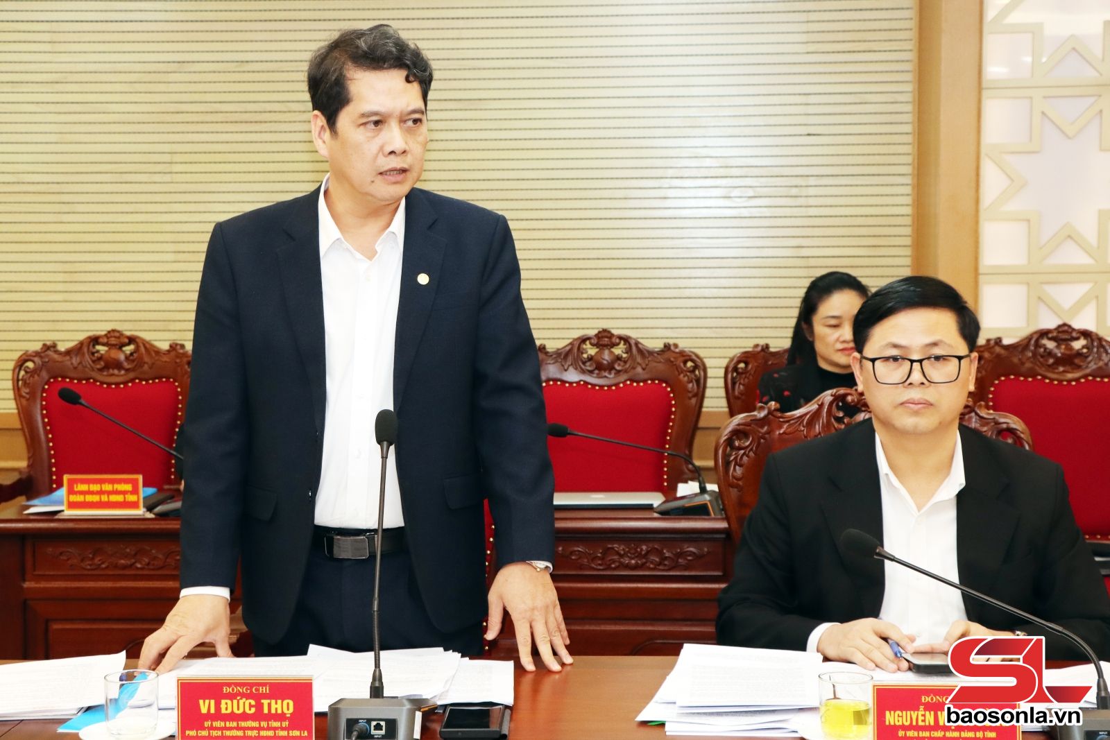 Đồng chí Vi Đức Thọ, Ủy viên Ban Thường vụ Tỉnh ủy, Phó Chủ tịch Thường trực HĐND tỉnh phát biểu tại Phiên họp.