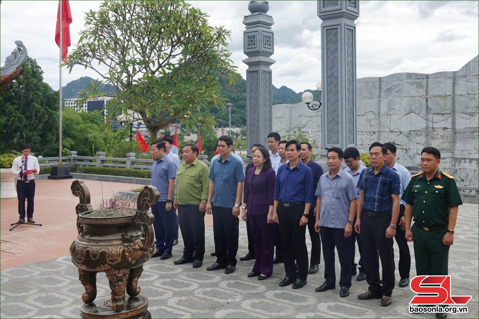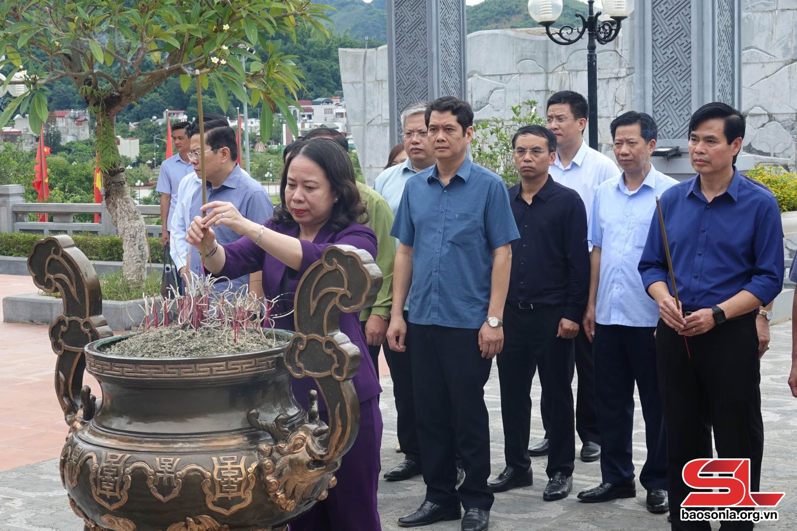 Nhân dịp này, Phó Chủ tịch nước Võ Thị Ánh Xuân và Đoàn công tác đã đến dâng hương Đền thờ Bác Hồ tại Quảng trường Tây Bắc, thành phố Sơn La.