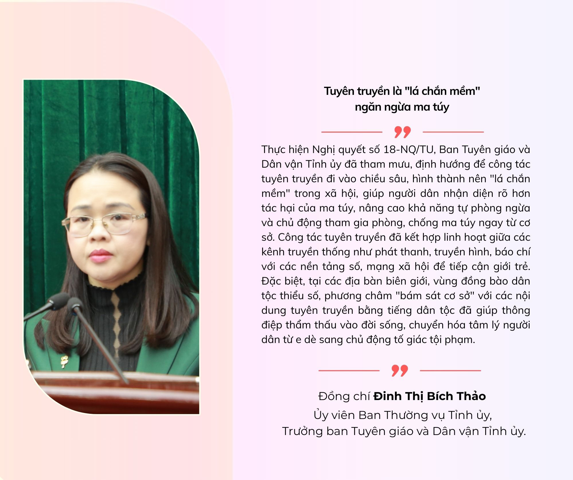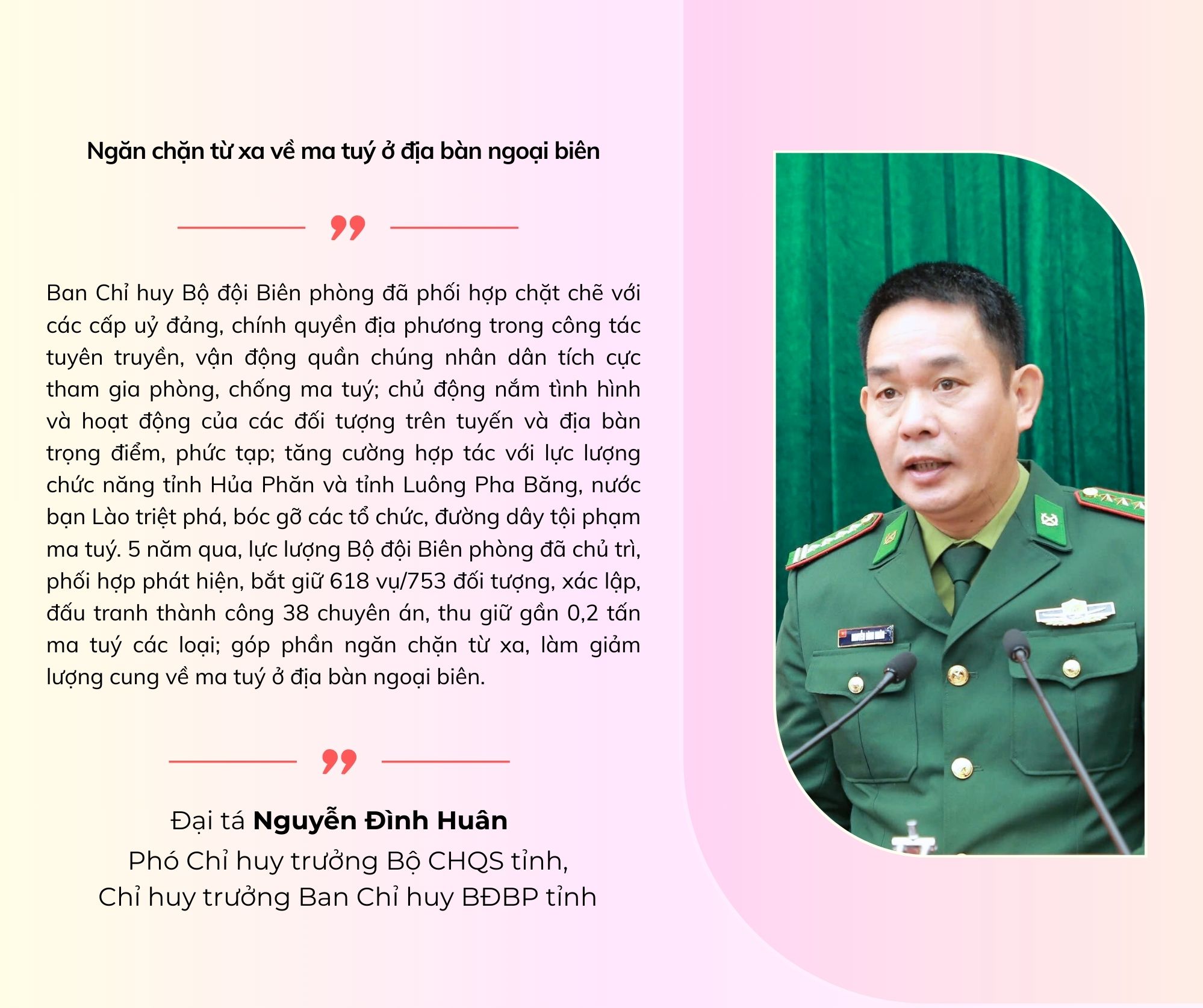 Các lực lượng chức năng tích cực đấu tranh với hoạt động của tội phạm ma túy, không để phát sinh "điểm nóng" phức tạp về ma túy; nâng cao hiệu quả hợp tác với các tỉnh Bắc Lào, ngăn chặn nguồn ma túy thẩm lậu qua biên giới. Giai đoạn 2021 - 2025, toàn tỉnh đã phát hiện, bắt giữ, xử lý 5.927 vụ, 7.662 đối tượng phạm tội về ma tuý; xác minh, truy bắt, vận động đầu thú, thanh loại 82 đối tượng truy nã về ma tuý.