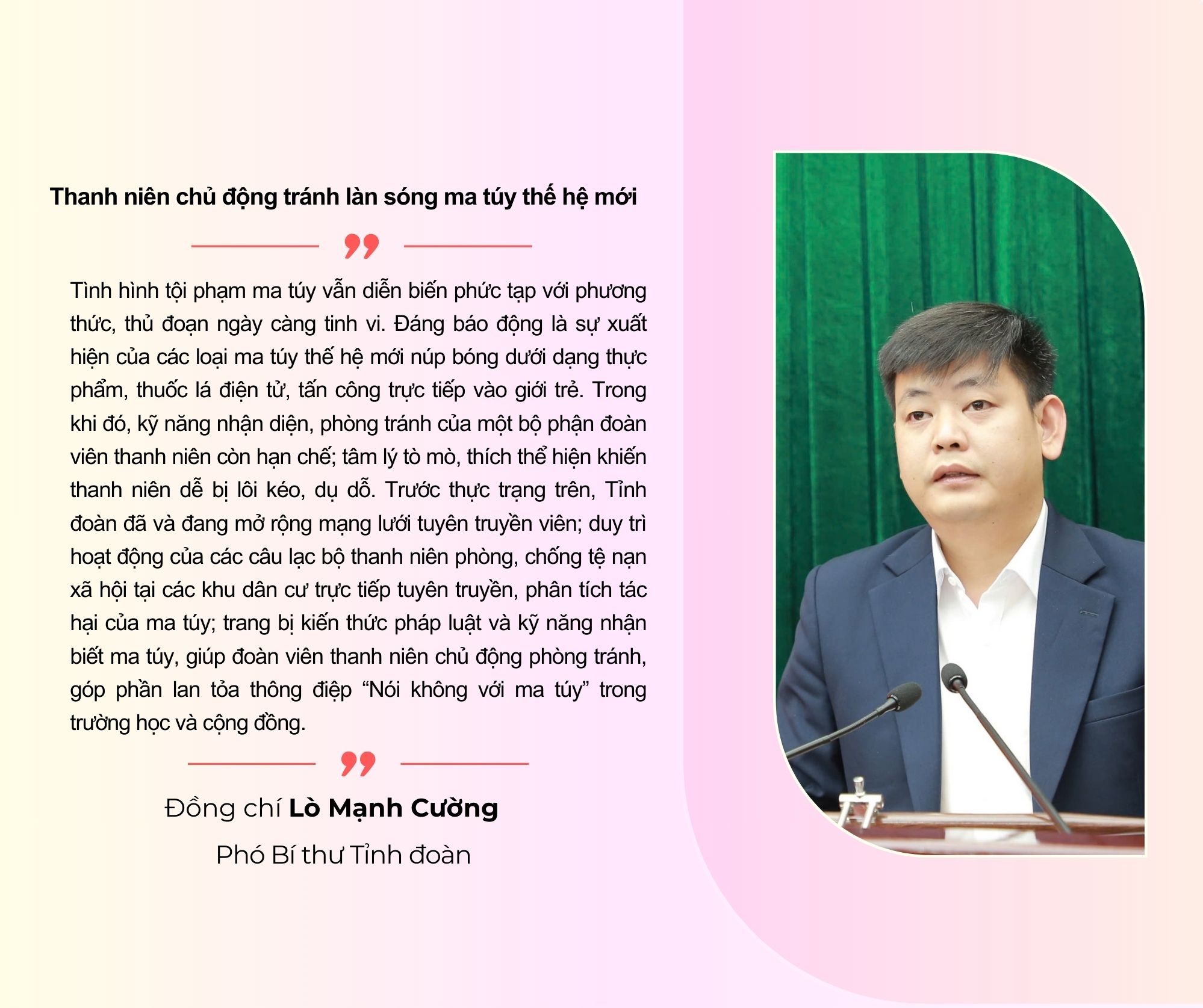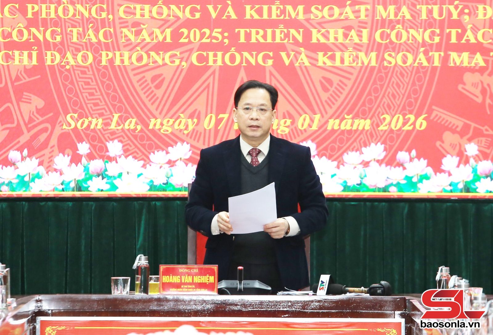 Đồng chí Bí thư Tỉnh ủy đề nghị các ban, ngành chủ động định hướng, chỉ đạo đổi mới nội dung, hình thức tuyên truyền; tập trung vào đối tượng thanh thiếu niên, học sinh, người lao động tự do, đồng bào vùng sâu, biên giới. Lực lượng Công an, Bộ đội Biên phòng, Hải quan phối hợp chặt chẽ nắm chắc tình hình, mở các đợt cao điểm tấn công, trấn áp tội phạm; triệt phá các đường dây, ổ nhóm lớn, liên tỉnh, xuyên quốc gia; xoá bỏ triệt để các điểm tổ chức, chứa chấp sử dụng trái phép chất ma túy, không để hình thành “điểm trung chuyển” ma túy. Viện Kiểm sát nhân dân, Tòa án nhân dân các cấp phối hợp chặt chẽ trong điều tra, truy tố, xét xử; bảo đảm xử lý nghiêm minh, đúng pháp luật,để cảnh tỉnh, răn đe, phòng ngừa. Đảng uỷ UBND tỉnh chỉ đạo UBND tỉnh bảo đảm nguồn lực, ưu tiên đầu tư nâng cấp cơ sở cai nghiện; đa dạng hóa các hình thức cai nghiện phù hợp với tình hình thực tiễn; chỉ đạo các xã, phường tổ chức cai nghiện ma tuý, quản lý sau cai thực chất, gắn với đào tạo nghề, giải quyết việc làm, hỗ trợ sinh kế bền vững; xây dựng bản, tiểu khu, cơ quan, đơn vị, trường học không ma tuý; tiến tới xây dựng xã, phường không ma tuý, góp phần thực hiện thắng lợi mục tiêu xây dựng tỉnh Sơn La không ma tuý vào năm 2030.