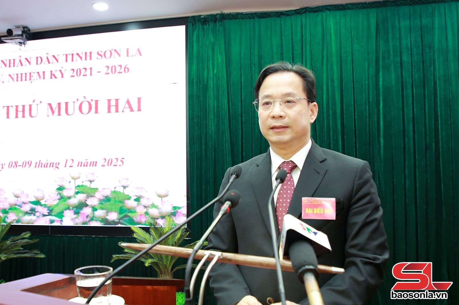 Tôi tin tưởng rằng, với tinh thần dân chủ, trách nhiệm, kỷ cương, trí tuệ, kỳ họp thứ 12, Hội đồng nhân dân tỉnh khóa XV sẽ thành công tốt đẹp, quyết định đúng những vấn đề quan trọng, Tôi mong muốn các cấp, các ngành, các địa phương, mỗi cán bộ, đảng viên, cử tri và Nhân dân các dân tộc trong tỉnh tiếp tục nêu cao tinh thần đoàn kết, đồng thuận, nỗ lực phấn đấu thực hiện tốt hơn nữa, hoàn thành xuất sắc mọi nhiệm vụ được giao, góp phần thực hiện thắng lợi các mục tiêu phát triển kinh tế - xã hội của tỉnh năm 2026, tạo đà để chúng ta từng bước thực hiện thắng lợi Nghị quyết Đại hội đại biểu Đảng bộ tỉnh lần thứ XVI, nhiệm kỳ 2025-2030 đã đề ra; đưa tỉnh Sơn La cùng cả nước bước vào Kỷ nguyên mới, Kỷ nguyên vươn mình phát triển giàu mạnh, thịnh vượng của dân tộc.