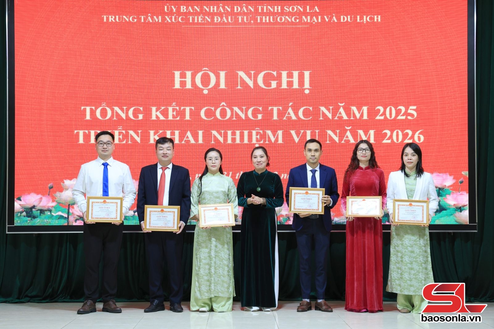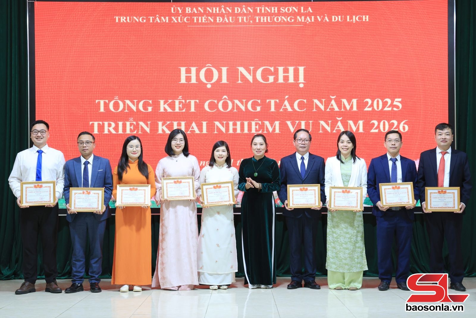 Nhân dịp này, Chủ tịch UBND tỉnh tặng Kỷ niệm chương “Vì sự nghiệp xây dựng và phát triển tỉnh Sơn La” cho 2 cá nhân. Giám đốc Trung tâm Xúc tiến Đầu tư, Thương mại và Du lịch tỉnh tặng giấy khen cho 14 doanh nghiệp, hợp tác xã đã có nhiều đóng góp với Trung tâm trong thực hiện nhiệm vụ công tác năm 2025; tặng giấy khen cho 1 tập thể, 6 cá nhân và công nhận danh hiệu chiến sĩ thi đua cấp cơ sở cho 16 cá nhân.