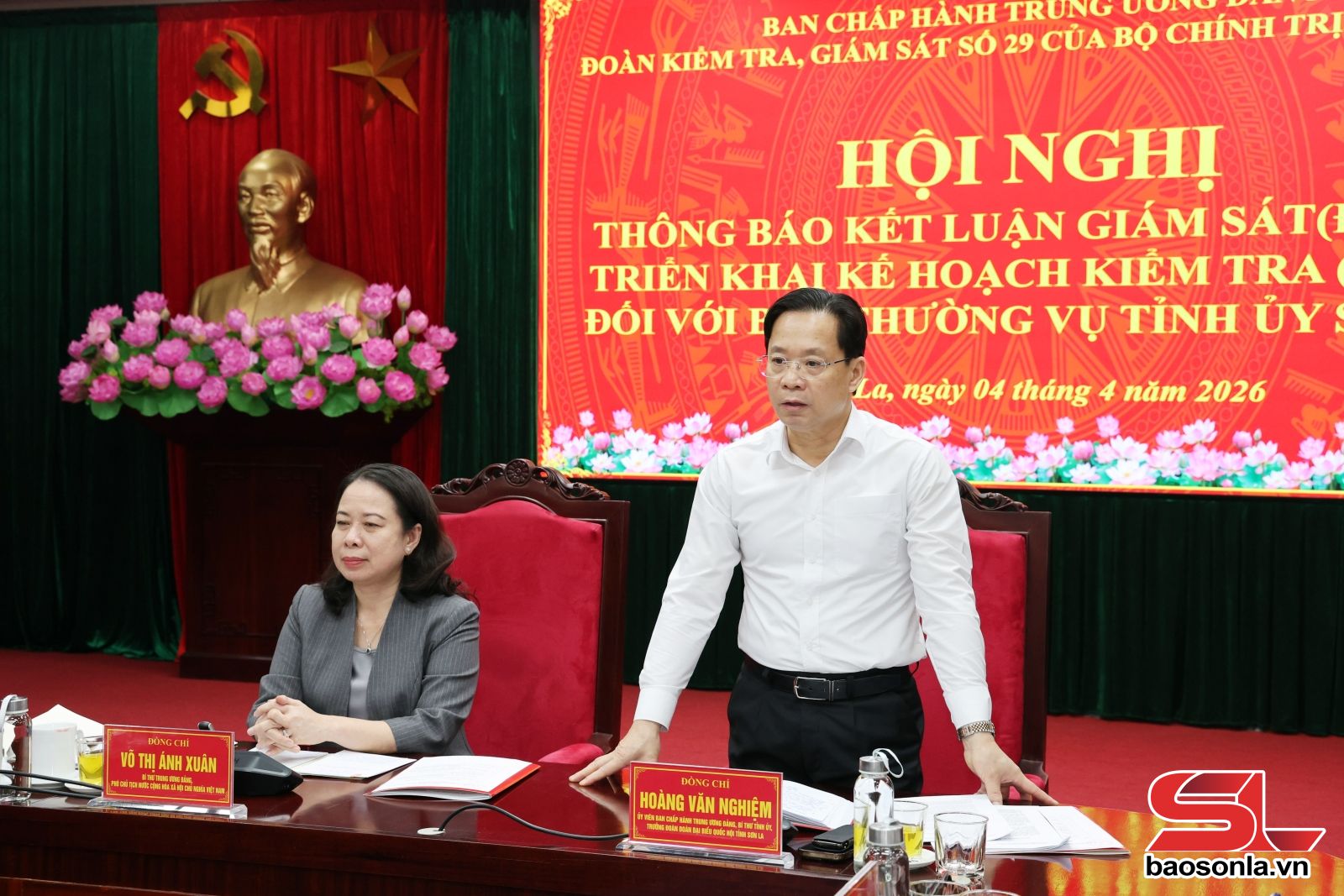 Thay mặt Ban Thường vụ Tỉnh uỷ Sơn La, đồng chí Hoàng Văn Nghiệm trân trọng cảm ơn và xin tiếp thu đầy đủ ý kiến chỉ đạo của đồng chí Trưởng Đoàn kiểm tra, giám sát và các ý kiến của các đồng chí thành viên Đoàn công tác.