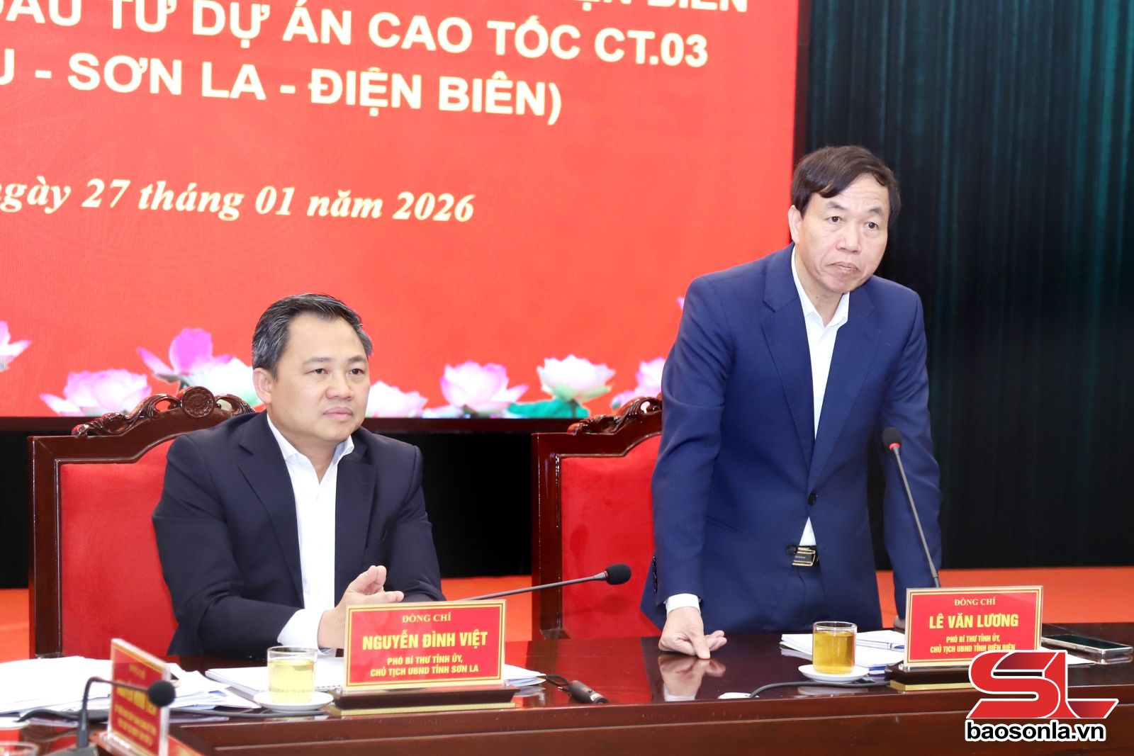 Ngày 27/1, Đoàn công tác của tỉnh Điện Biên do đồng chí Lê Văn Lương, Phó Bí thư Tỉnh ủy, Chủ tịch UBND tỉnh Điện Biên, làm Trưởng đoàn đã làm việc với tỉnh Sơn La về phương án đầu tư Dự án cao tốc CT.03 (Mộc Châu - Sơn La - Điện Biên). Làm việc với Đoàn, tỉnh Sơn La có các đồng chí: Nguyễn Đình Việt, Phó Bí thư Tỉnh ủy, Chủ tịch UBND tỉnh; Nguyễn Minh Tiến, Phó Chủ tịch UBND tỉnh; Đào Tài Tuệ, Ủy viên Ban Thường vụ Tỉnh ủy, Giám đốc Sở Xây dựng; lãnh đạo một số sở, ban, ngành liên quan.