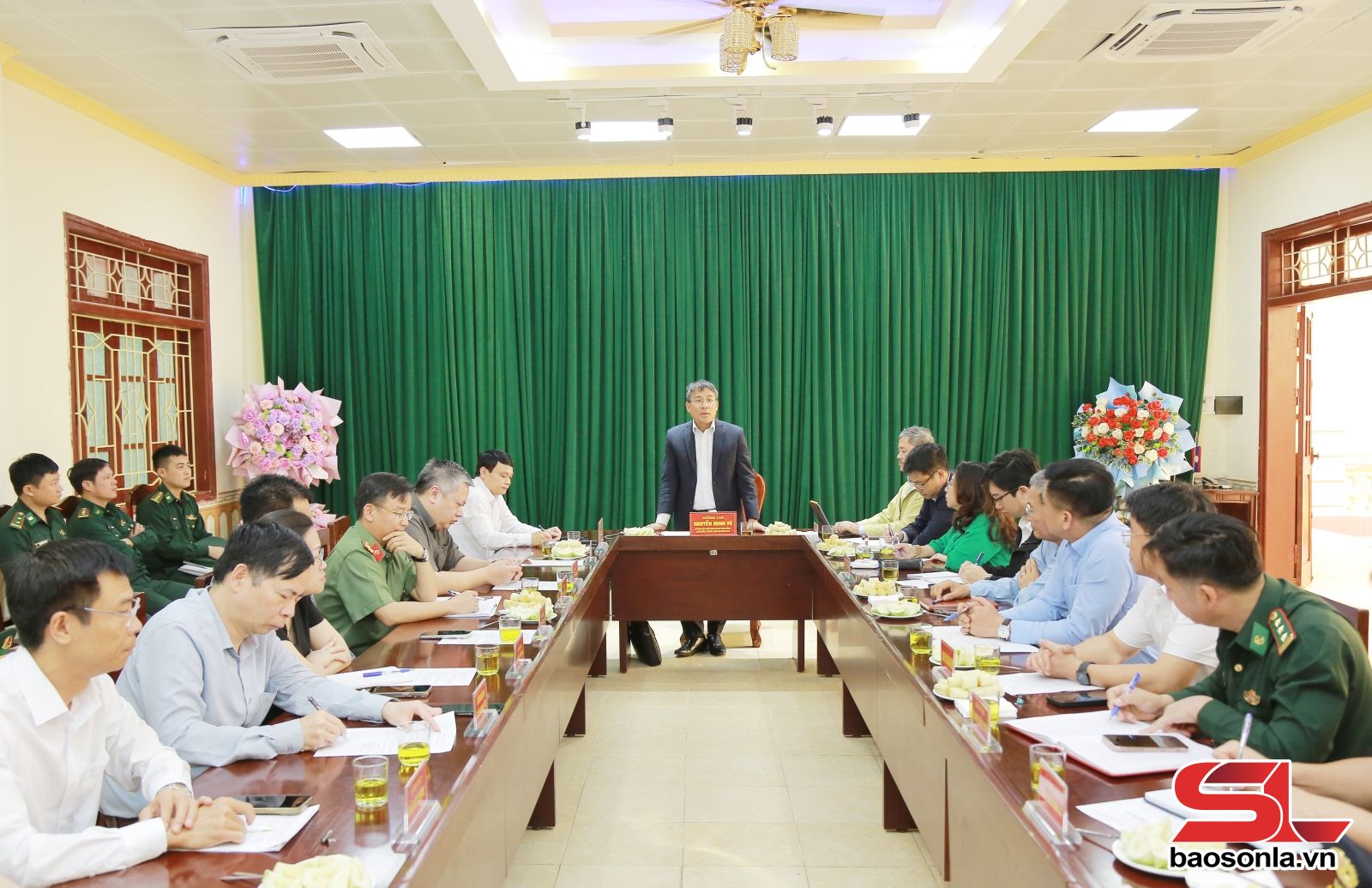 Đón và làm việc với đoàn, tỉnh Sơn La có đồng chí Đặng Ngọc Hậu, Phó Chủ tịch UBND tỉnh, Trưởng Ban Chỉ đạo công tác biên giới tỉnh; lãnh đạo một số sở ngành, địa phương liên quan.