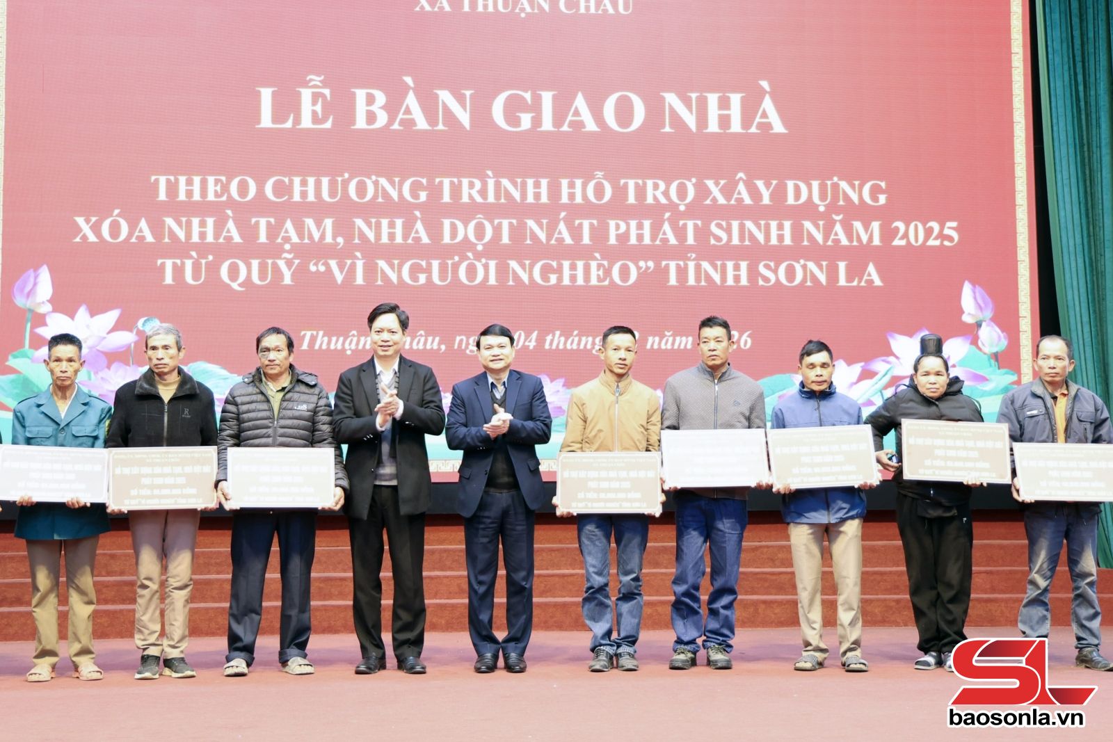 Qua rà soát, xác minh, trên địa bàn xã Thuận Châu có 67 hộ nghèo thuộc diện nhà tạm, nhà dột nát phát sinh sau ngày 15/5/2025, đủ điều kiện hỗ trợ theo quy định. Với sự quan tâm, chỉ đạo sát sao của tỉnh và sự vào cuộc tích cực của địa phương, 67/67 hộ đã được khởi công xây dựng, sửa chữa nhà ở từ giữa tháng 11/2025 và hoàn thành đúng tiến độ, đạt 100% kế hoạch đề ra. Tổng kinh phí thực hiện chương trình là 3,96 tỷ đồng. Trong đó, Quỹ “Vì người nghèo” tỉnh Sơn La hỗ trợ 3,9 tỷ đồng cho 66 hộ, gồm xây mới 64 nhà và sửa chữa 2 nhà; 1 hộ người có công được hỗ trợ 60 triệu đồng. Các căn nhà sau khi hoàn thành đều bảo đảm tiêu chí “3 cứng” (nền cứng, khung cứng, mái cứng); sử dụng vật liệu bền chắc, đáp ứng yêu cầu về chất lượng, tuổi thọ và an toàn trong sử dụng.