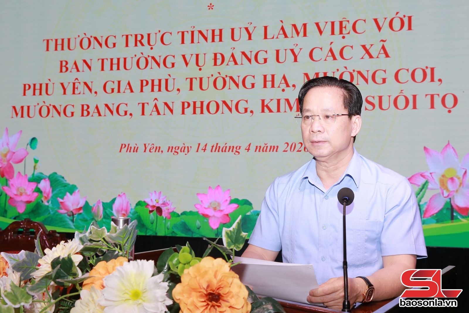 Ngày 14/4, đồng chí Hoàng Văn Nghiệm, Ủy viên Ban Chấp hành Trung ương Đảng, Bí thư Tỉnh ủy, Trưởng Đoàn đại biểu Quốc hội tỉnh, cùng Đoàn công tác đã làm việc với Ban Thường vụ Đảng ủy các xã: Phù Yên, Gia Phù, Tường Hạ, Mường Cơi, Mường Bang, Tân Phong, Kim Bon, Suối Tọ.