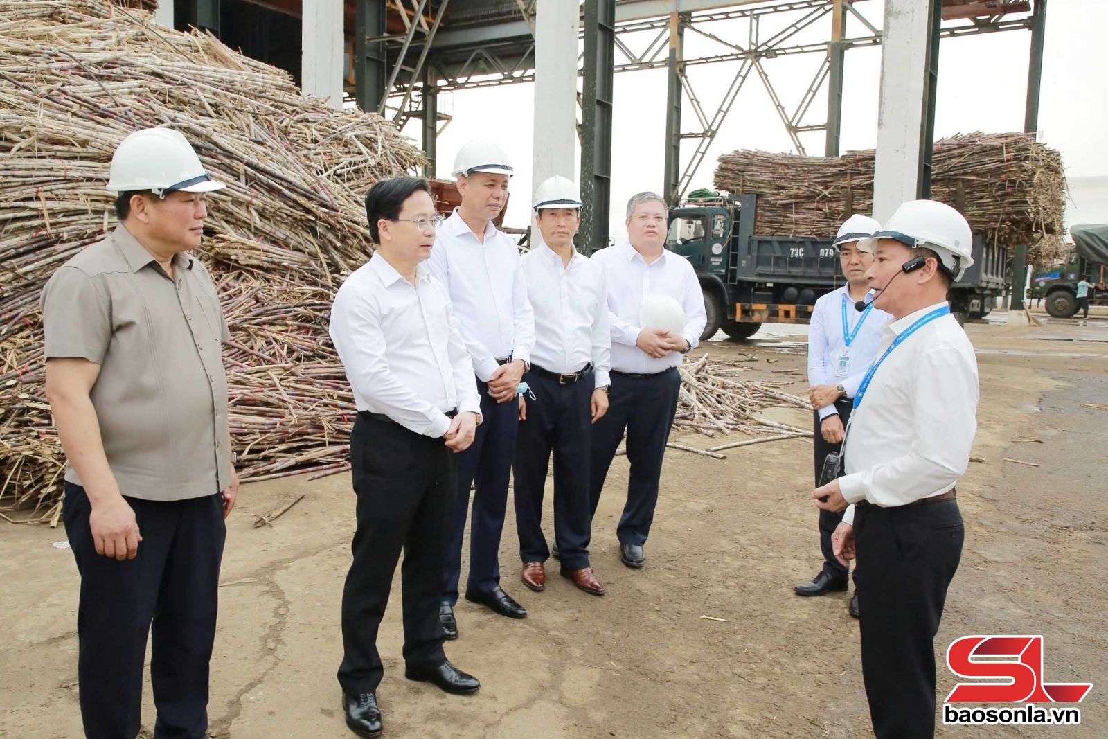 Tiếp đó, đoàn công tác nắm tình hình hoạt động sản xuất của Nhà máy Mía đường Sơn La tại xã Mai Sơn. Công ty Cổ phần Mía đường Sơn La có dây chuyền sản xuất đường RS, công suất thiết kế 5.200 tấn mía/ngày và một dây chuyền sản xuất đường RE, công suất 500 tấn đường/ngày. Hiện nay, Công ty liên kết sản xuất với hơn 10.000 hộ nông dân tại các xã: Mai Sơn, Phiêng Pằn, Yên Sơn, Chiềng Sung… trồng trên 9.000 ha mía; tạo việc làm cho trên 300 công nhân, với thu nhập bình quân gần 9 triệu đồng/người/tháng…