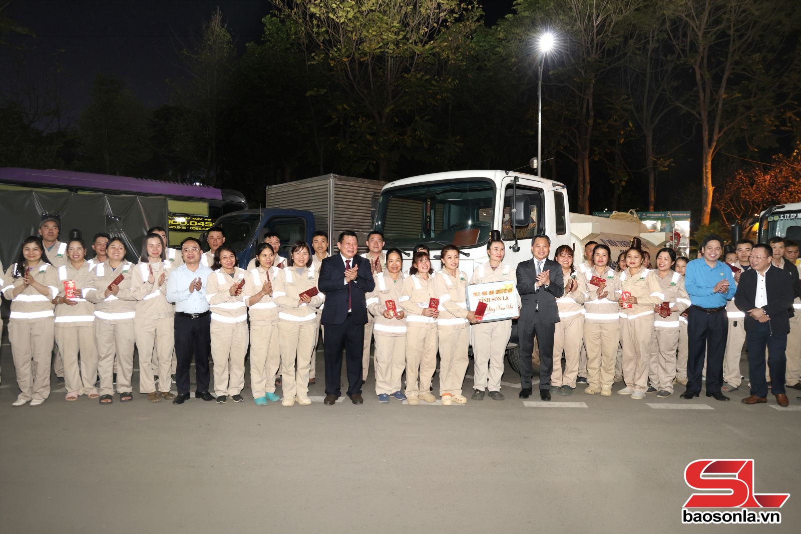 Tại Xí nghiệp Quảng trường Tây Bắc (Công ty Cổ phần Môi trường và Dịch vụ đô thị Sơn La), Đoàn công tác đã thăm hỏi tình hình thực hiện nhiệm vụ và đời sống của cán bộ, công nhân, người lao động trong dịp Tết. Đồng chí Phó Bí thư Thường trực Tỉnh ủy ghi nhận tinh thần trách nhiệm của đơn vị trong việc duy trì công tác vệ sinh môi trường, chỉnh trang khu vực Quảng trường, phục vụ nhân dân vui xuân, đón Tết.