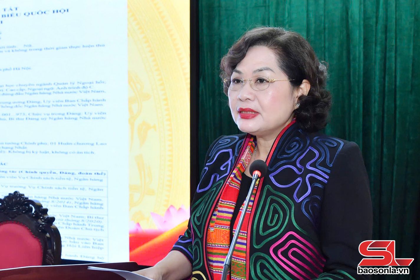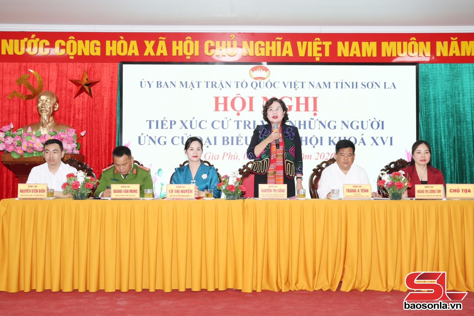 Dự hội nghị có các đồng chí: Nguyễn Thị Hồng, Ủy viên Ban Chấp hành Trung ương Đảng, Thống đốc Ngân hàng Nhà nước Việt Nam; Lò Minh Hùng, Phó Bí thư Thường trực Tỉnh ủy, Chủ tịch HĐND tỉnh; lãnh đạo các vụ, cục Ngân hàng Nhà nước Việt Nam; đại diện Ban Thường trực Ủy ban MTTQ Việt Nam tỉnh cùng đông đảo cử tri xã Gia Phù và xã Kim Bon.