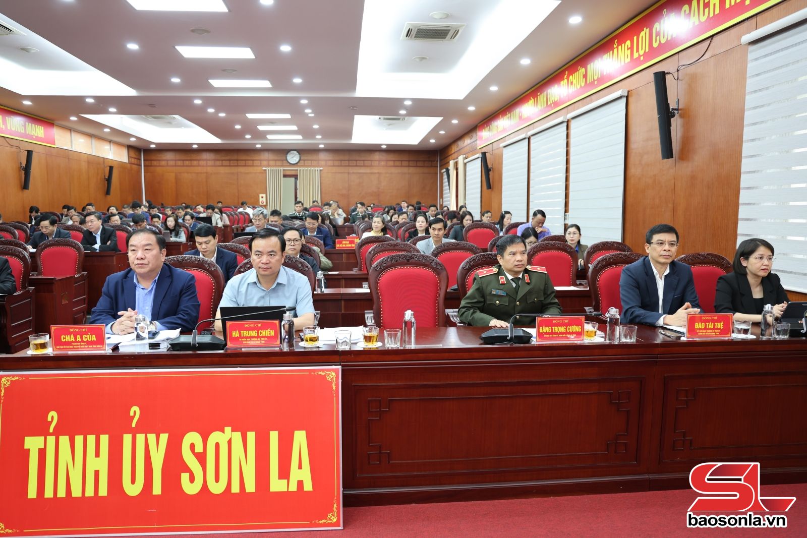 Chủ trì hội nghị có các đồng chí: Hoàng Văn Nghiệm, Ủy viên Ban Chấp hành Trung ương Đảng, Bí thư Tỉnh uỷ, Trưởng Đoàn đại biểu Quốc hội tỉnh; Lò Minh Hùng, Phó Bí thư Thường trực Tỉnh ủy, Chủ tịch HĐND tỉnh; Chá A Của, Phó Bí thư Tỉnh ủy, Chủ tịch Ủy ban MTTQ Việt Nam tỉnh.
