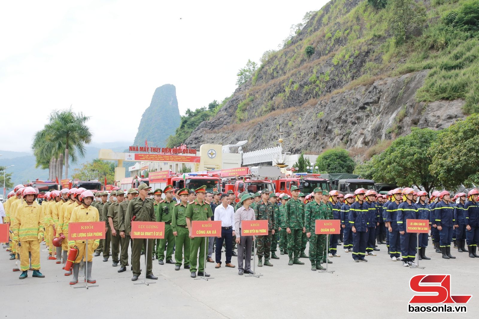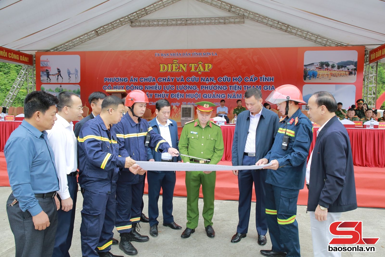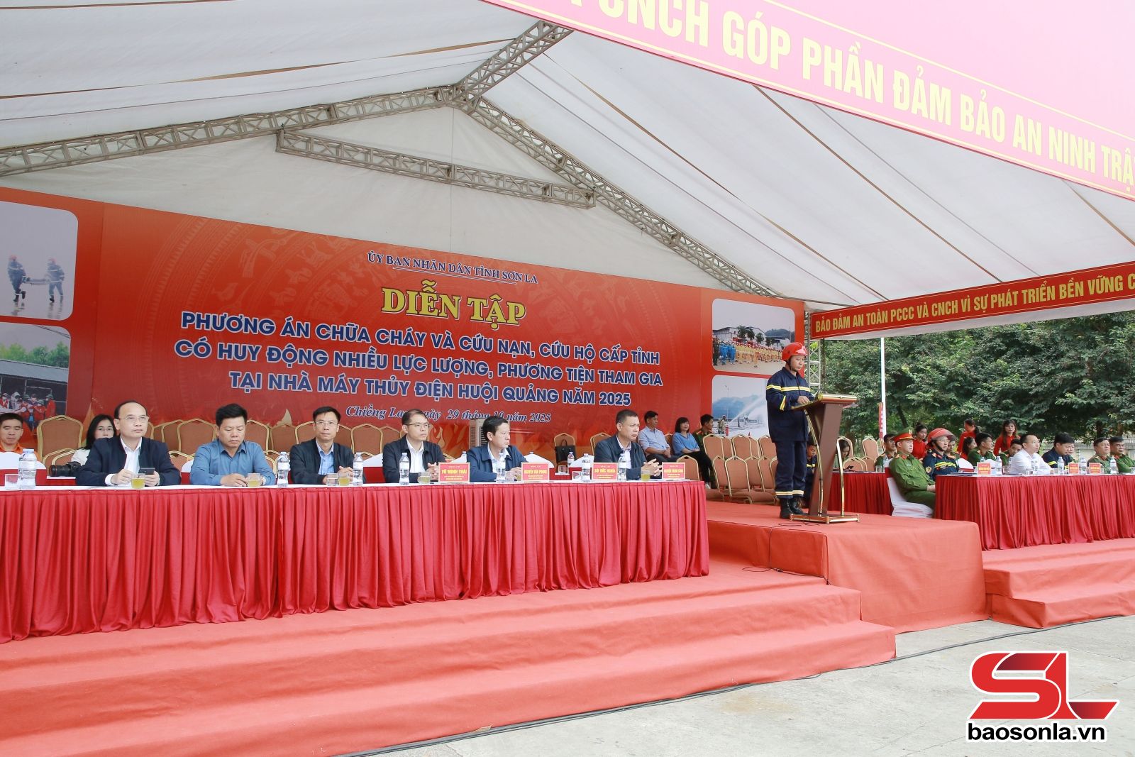 Tại cuộc tổng duyệt, cán bộ, chiến sĩ, nhân viên y tế, lực lượng dân quân và công nhân viên của các đơn vị đã thực hiện phần cơ chế và thực hành diễn tập phương án chữa cháy và cứu nạn cứu hộ cấp tỉnh có huy động nhiều lực lượng, phương tiện phối hợp tham gia tại Nhà máy thủy điện Huội Quảng năm 2025.