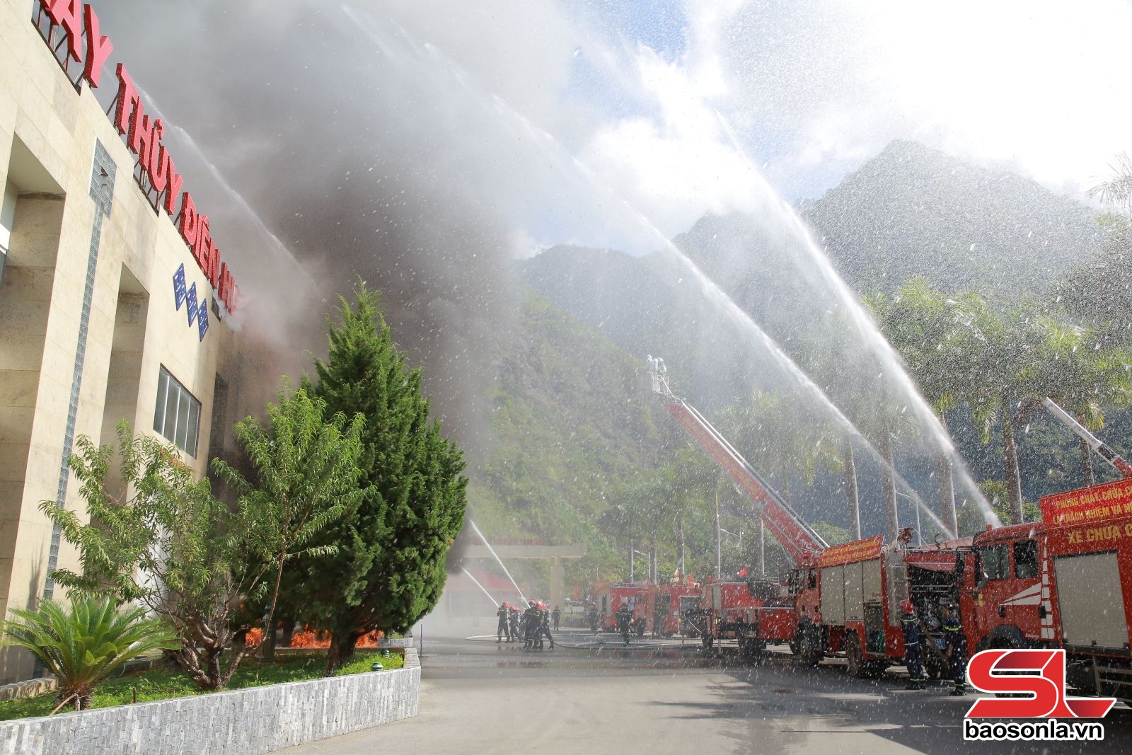 Các đơn vị, lực lượng tham gia công tác phòng cháy chữa cháy và cứu nạn cứu hộ nghiêm túc thực hiện đúng phương án đề ra theo 5 giai đoạn, gồm: Lãnh đạo công ty thủy điện Huội Quảng - Bản Chát là chỉ huy, huy động lực lượng PCCC và CNCH cơ sở triển khai các hoạt động chữa cháy và cứu nạn, cứu hộ ban đầu. Lãnh đạo UBND xã huy động lực lượng dân phòng tham gia phối hợp chữa cháy và cứu nạn, cứu hộ. Lãnh đạo phòng Cảnh sát PCCC&CNCH huy động lực lượng, phương tiện trong phạm vi quản lý, thực hiện công tác chỉ huy chữa cháy và cứu nạn, cứu hộ. Lãnh đạo UBND tỉnh (Ban Chỉ đạo diễn tập, Ban Chỉ huy diễn tập) chỉ đạo, chỉ huy lực lượng, phương tiện của các sở, ngành trên địa bàn tỉnh, lực lượng Quân đội và các đơn vị có liên quan tham gia triển khai chữa cháy, cứu nạn, cứu hộ. Lực lượng, phương tiện Cảnh sát PCCC và CNCH - Công an tỉnh Lai Châu đến chi viện, tham gia chữa cháy, cứu nạn, cứu hộ. Ban Chỉ huy diễn tập thông báo công tác cứu người bị nạn, cứu tài sản và chữa cháy hoàn thành. Lực lượng thuộc Công an tỉnh Sơn La, Lai Châu phối hợp cùng lực lượng PCCC cơ sở và các lực lượng làm nhiệm vụ đảm bảo an ninh. trật tự, bảo vệ hiện trường, tiến hành các hoạt động khám nghiệm, điều tra, xác định nguyên nhân, thiệt hại do cháy, sự cố, tai nạn.