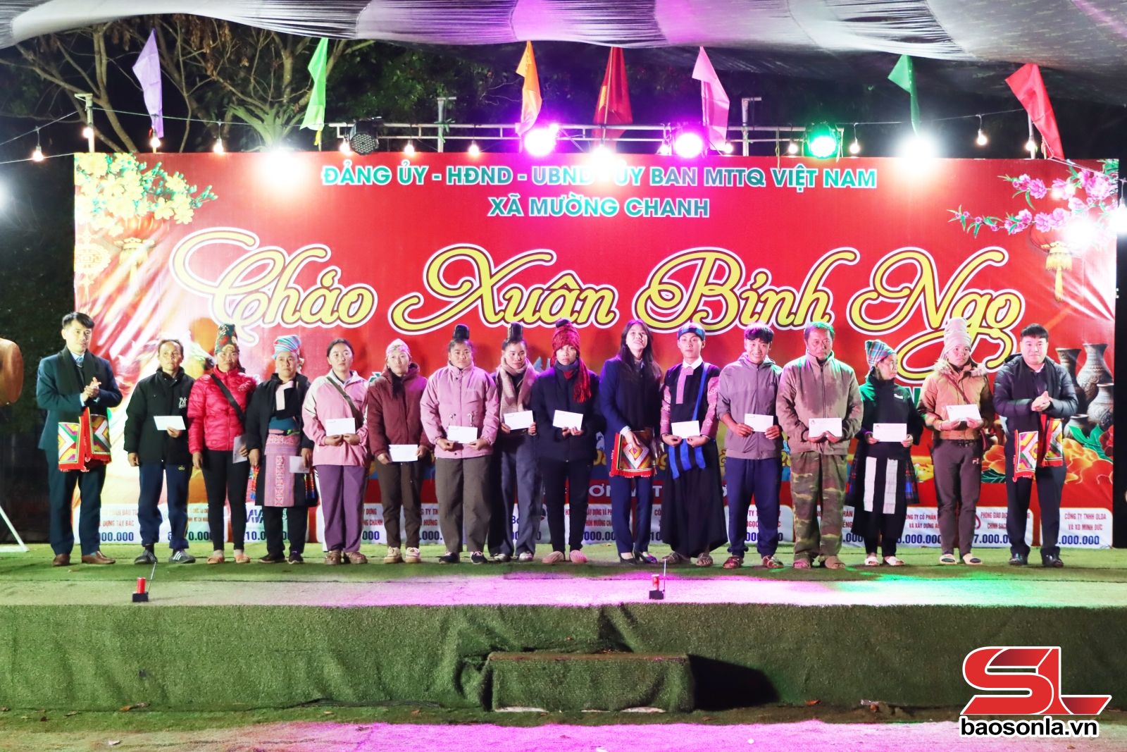 Nhân dịp này, đồng chí Phó Chủ tịch Thường trực UBND tỉnh tặng 10 suất quà cho 10 hộ gia đình có công với cách mạng; Ngân hàng Viettinbank và Chi nhánh Ngân hàng CSXH Mai Sơn tặng 40 suất quà cho các hộ nghèo của xã Mường Chanh.