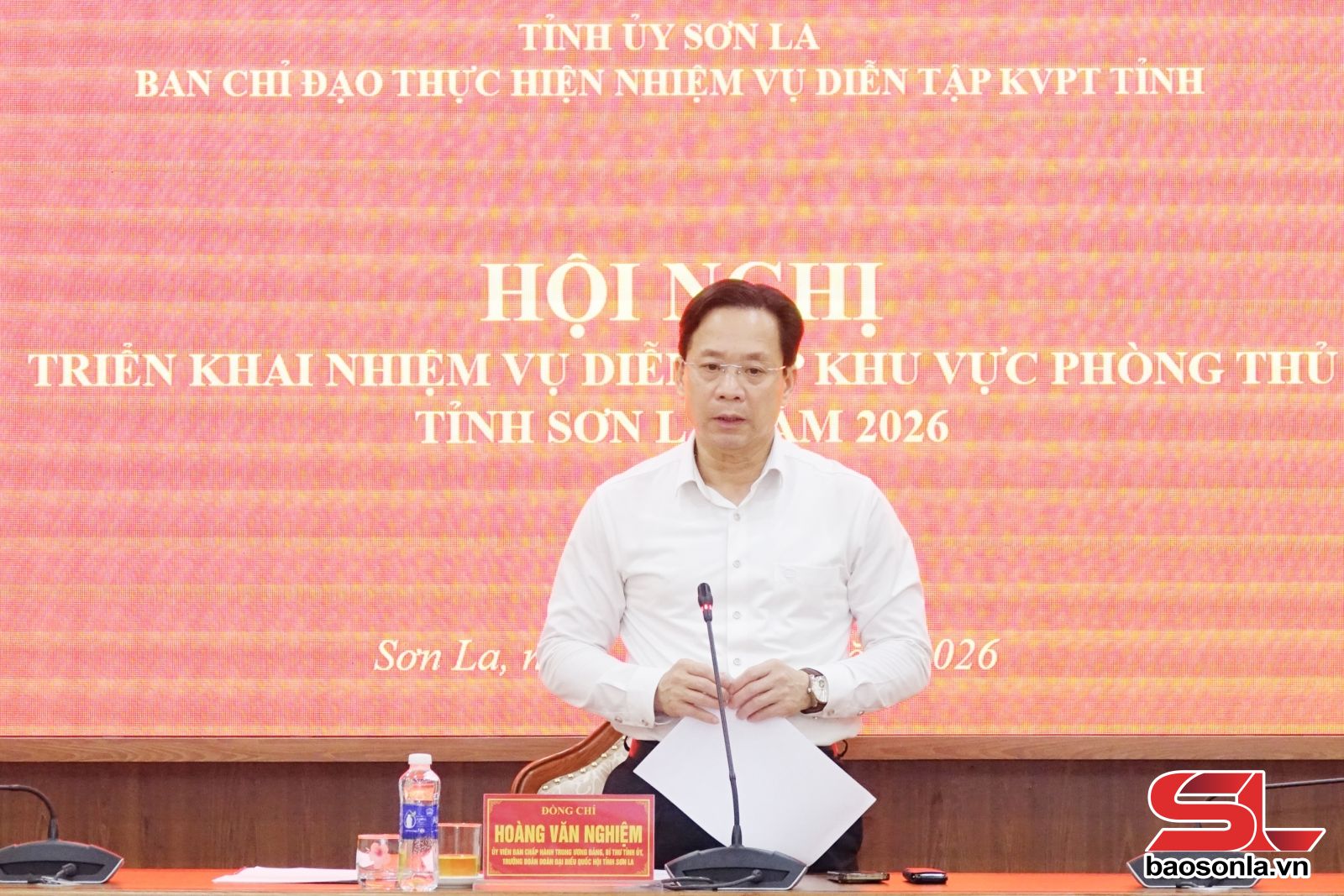 Ngày 27/3, đồng chí Hoàng Văn Nghiệm, Ủy viên Ban Chấp hành Trung ương Đảng, Bí thư Tỉnh ủy, Trưởng Đoàn đại biểu Quốc hội tỉnh, Trưởng ban Chỉ đạo thực hiện nhiệm vụ diễn tập khu vực phòng thủ tỉnh, đã chủ trì Hội nghị triển khai nhiệm vụ diễn tập khu vực phòng thủ tỉnh Sơn La năm 2026.