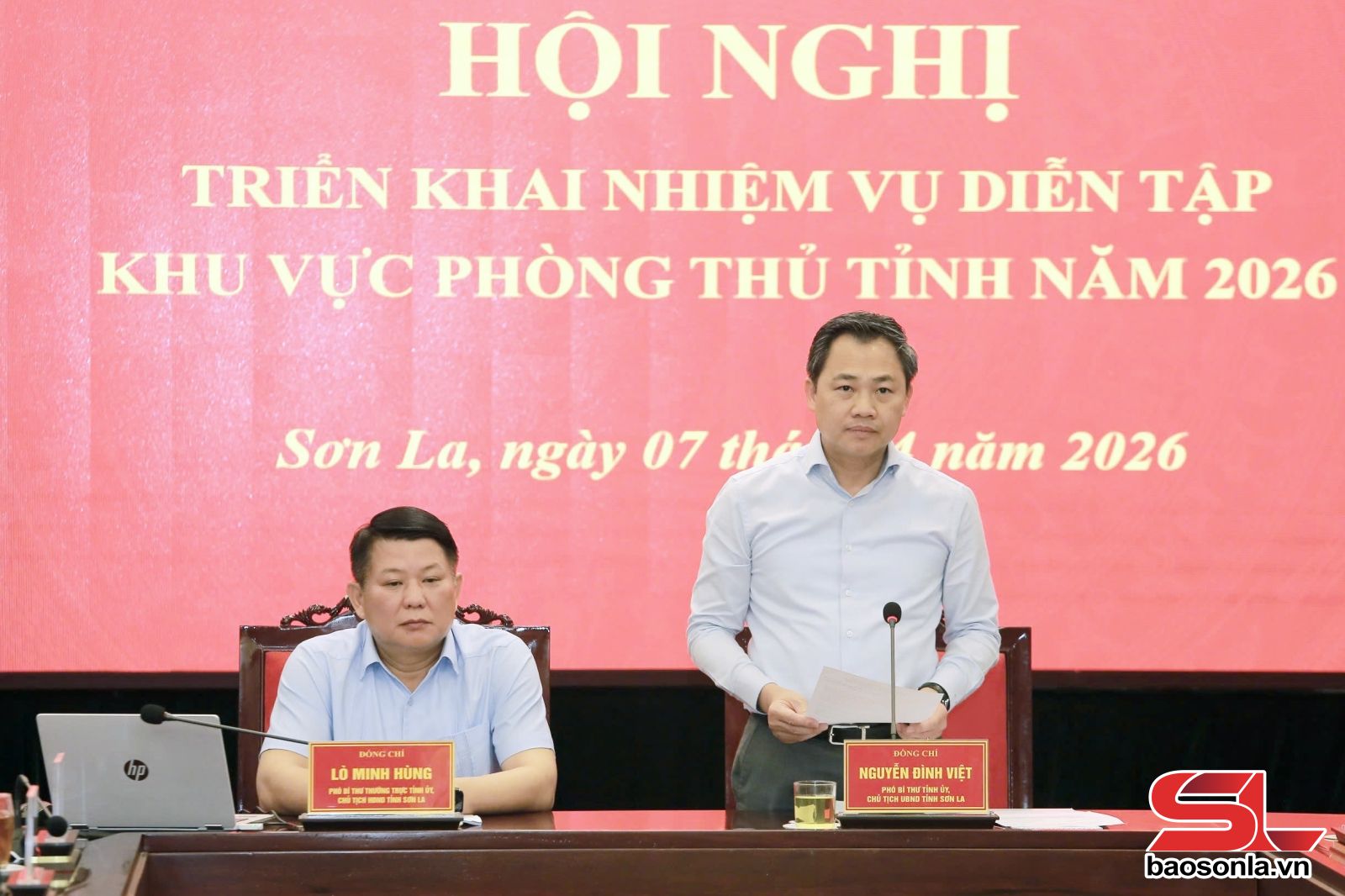 Ngày 7/4, các đồng chí: Lò Minh Hùng, Phó Bí thư Thường trực Tỉnh ủy, Chủ tịch HĐND tỉnh; Nguyễn Đình Việt, Phó Bí thư Tỉnh ủy, Chủ tịch UBND tỉnh, đã chủ trì Hội nghị triển khai nhiệm vụ diễn tập khu vực phòng thủ tỉnh Sơn La năm 2026. Dự hội nghị có các đồng chí Ủy viên Ban Thường vụ Tỉnh ủy; thành viên Ban tổ chức diễn tập.