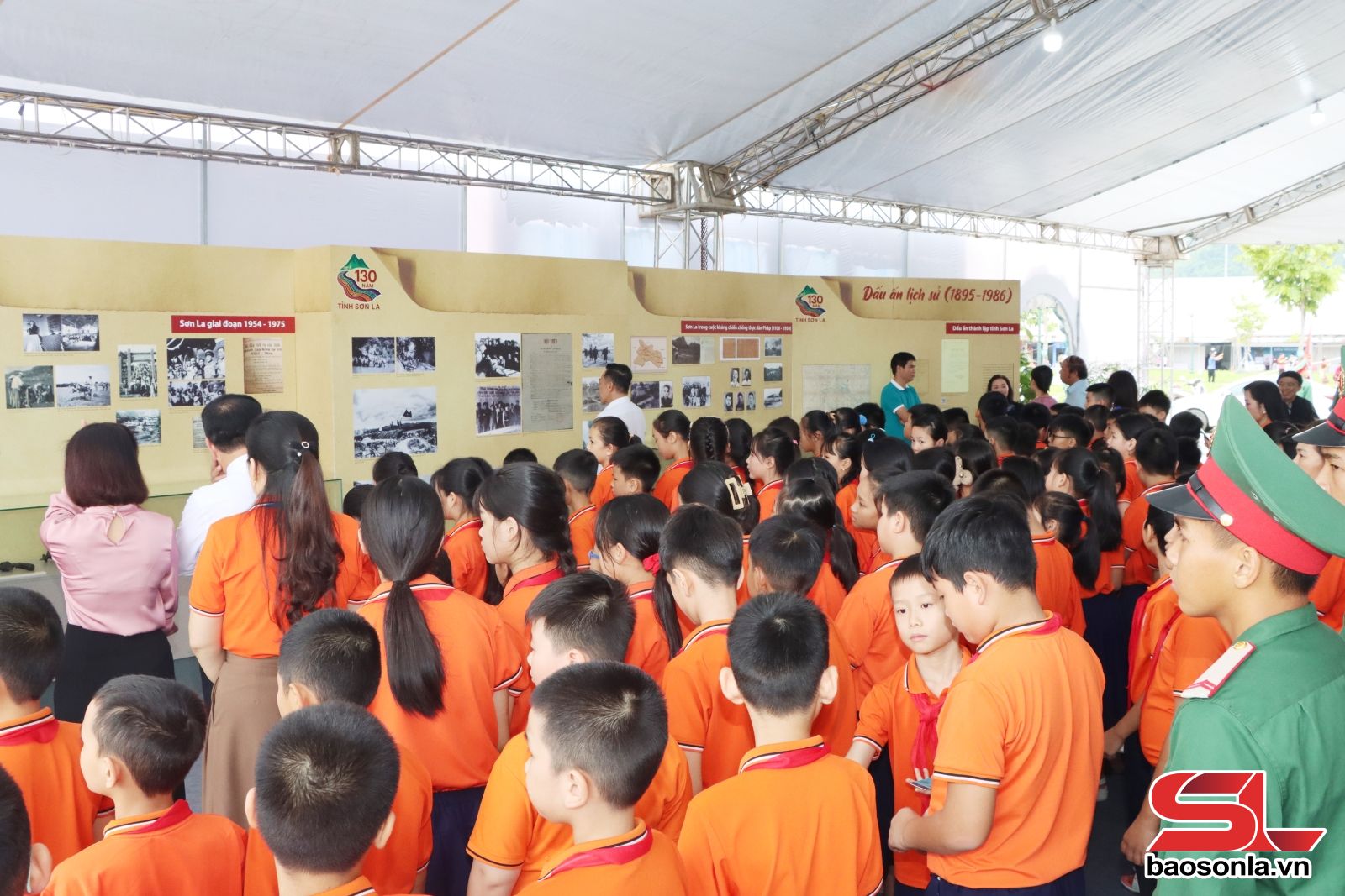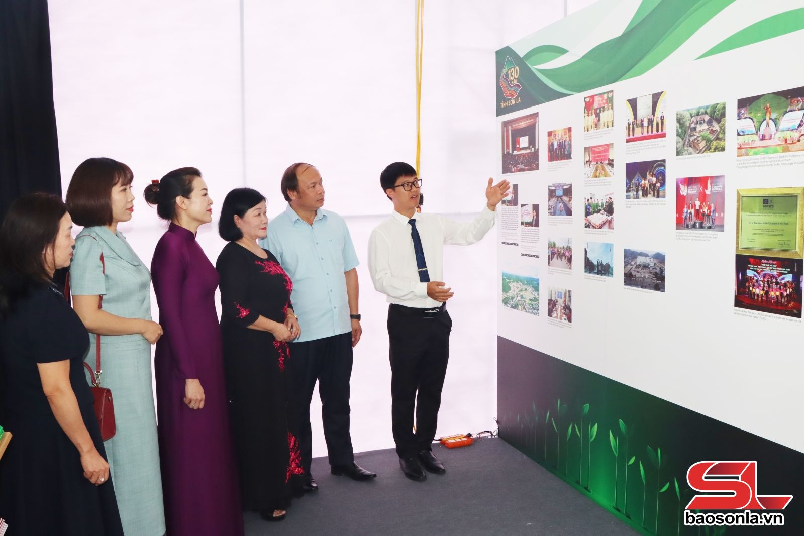 Triển lãm ảnh gồm 150 tư liệu, ảnh; 20 hiện vật được trưng bày gồm 2 phần, phần I: Dấu ấn lịch sử (từ năm 1895 - 1986) và phần II: Sơn La - Khát vọng phát triển (1986 - nay). Triển lãm sách với chủ đề “Sơn La - Miền đất huyền thoại”, giới thiệu hơn 100 đầu sách, với 3 phần: Dấu ấn lịch sử; sắc màu văn hóa và khát vọng phát triển đã tái hiện lại dấu ấn lịch sử quan trọng trong sự nghiệp hình thành, xây dựng và phát triển tỉnh Sơn La từ khi thành lập đến nay. Đồng thời, khẳng định, tôn vinh những công lao to lớn của các thế hệ cán bộ, đảng viên và nhân dân các dân tộc trong quá xây dựng và phát triển của tỉnh Sơn La.