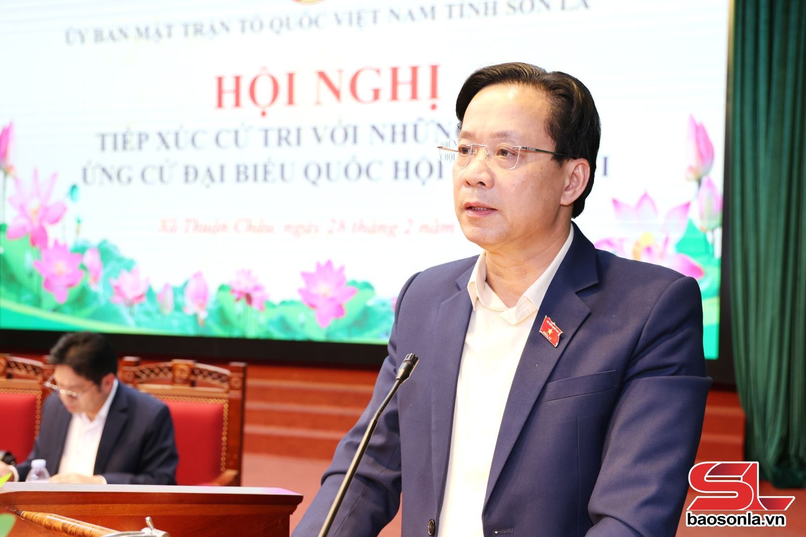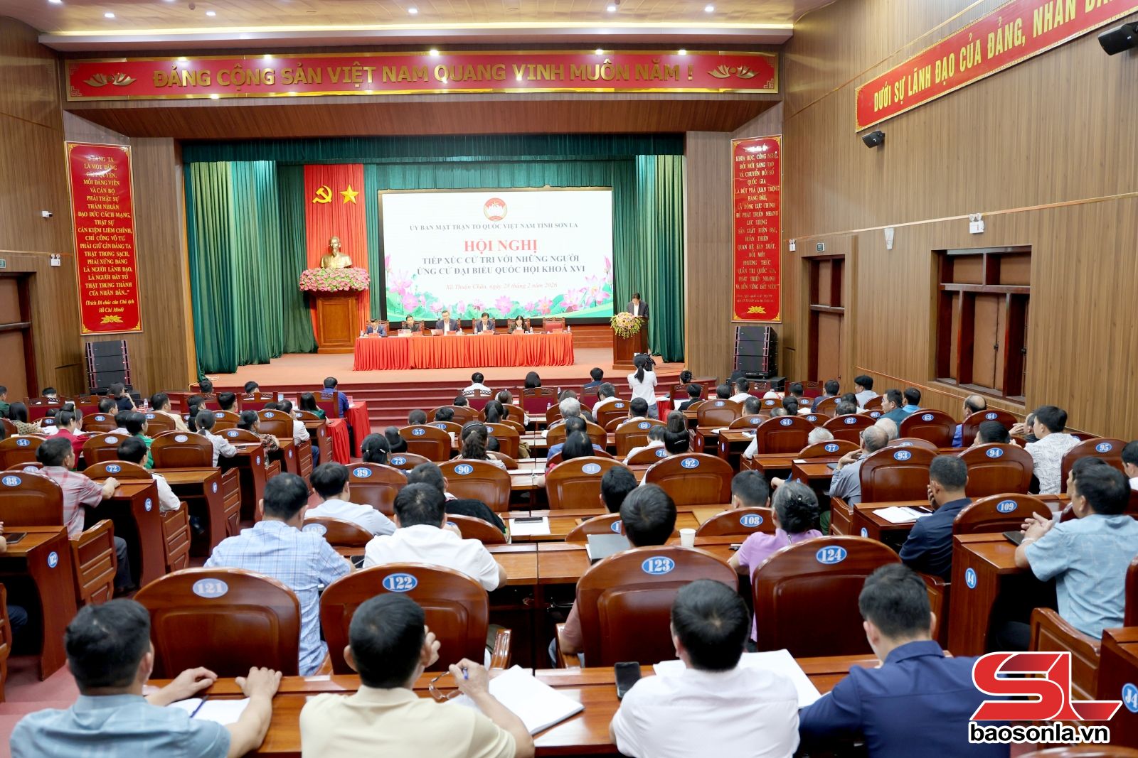 Tại hội nghị, đại diện Ủy ban MTTQ Việt Nam tỉnh đã thông tin tới cử tri danh sách, tiểu sử tóm tắt của 5 người ứng cử đại biểu Quốc hội khóa XVI, gồm các đồng chí: Hoàng Văn Nghiệm, Ủy viên Ban Chấp hành Trung ương Đảng, Bí thư Tỉnh ủy, Trưởng Đoàn đại biểu Quốc hội tỉnh; Quàng Văn Hương, Phó Chủ tịch Hội đồng Dân tộc của Quốc hội; Lò Văn Thọ, Nghệ sĩ ưu tú, Phó Trưởng phòng Nhà hát Ca múa nhạc, Trung tâm Văn hóa - Thể thao, Sở Văn hóa, Thể thao và Du lịch; Thào A Tùng, viên chức, Ủy viên Ban Chấp hành Chi đoàn Trung tâm Văn hóa - Thể thao, Sở Văn hóa, Thể thao và Du lịch; Sa Thị Thanh Duyên, Trưởng phòng Quản lý chất lượng, chế biến, phát triển thị trường, Chi cục Phát triển nông thôn, Sở Nông nghiệp và Môi trường.