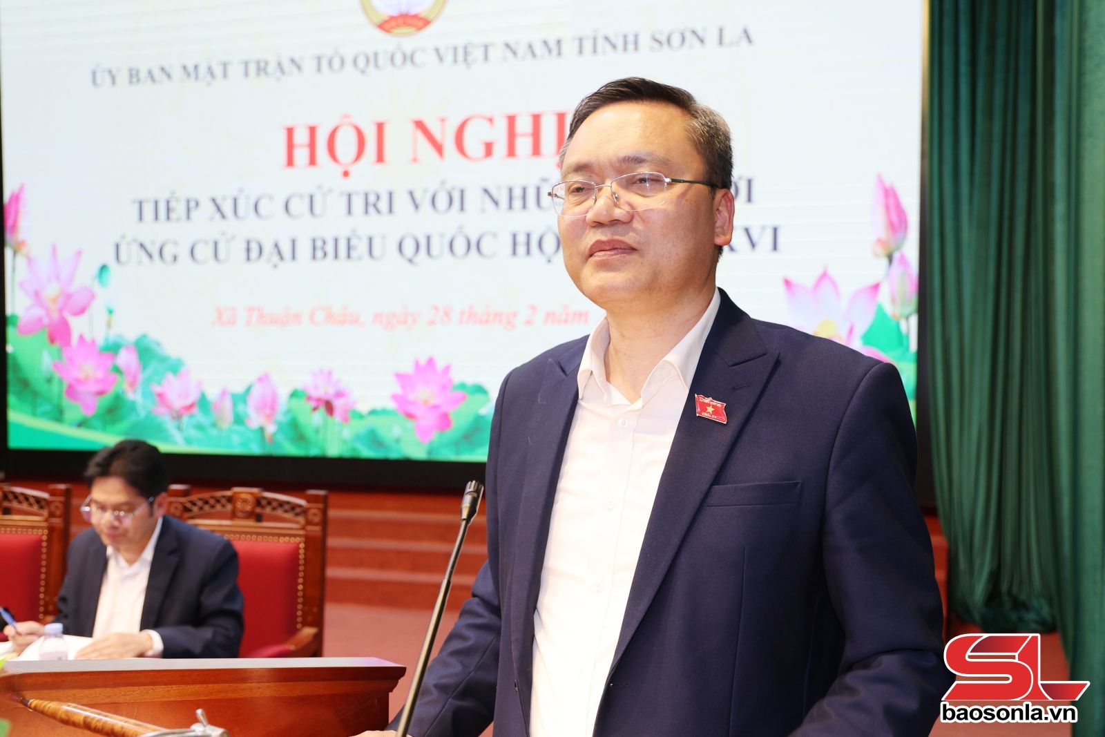 Cử tri các xã đều bày tỏ tinh thần phấn khởi, tin tưởng và đánh giá cao chương trình hành động của các ứng cử viên; mong muốn các ứng cử viên, nếu trúng cử hoặc trên cương vị hiện nay, tiếp tục quan tâm đến đời sống người dân, nhất là ở các xã khó khăn, vùng sâu, vùng xa; kiến nghị Quốc hội và Chính phủ sớm ưu tiên bố trí nguồn lực cho chương trình xây dựng nông thôn mới, phát triển hạ tầng giao thông, đặc biệt là tuyến cao tốc Mộc Châu - Sơn La - Điện Biên; đầu tư cơ sở vật chất cho giáo dục vùng đồng bào dân tộc thiểu số…