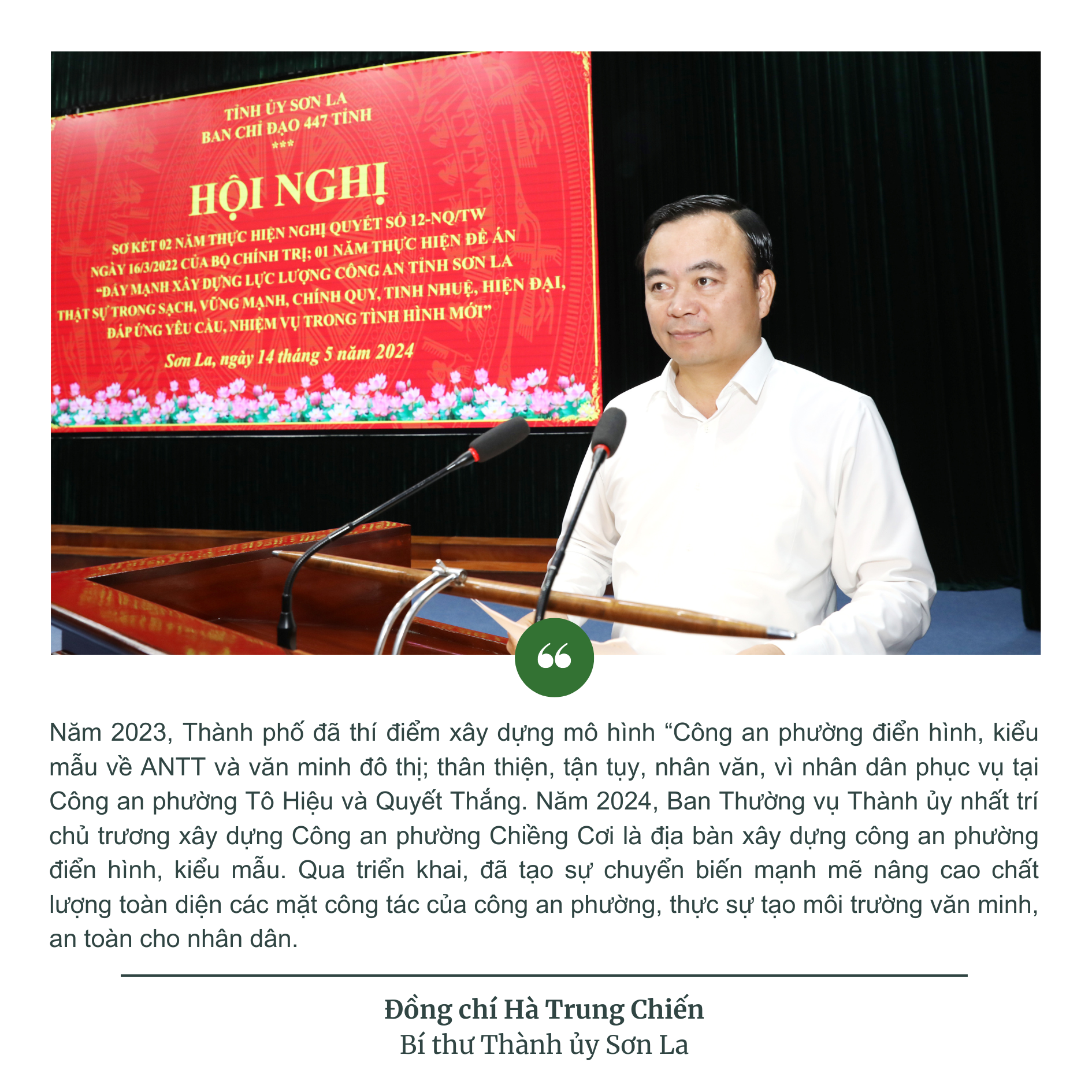 Sau 2 năm triển khai Nghị quyết 12 của Bộ Chính trị và 1 năm thực hiện Đề án đã đạt được nhiều kết quả quan trọng, tạo sự chuyển biến mạnh mẽ, được các cấp, các ngành, cấp ủy, chính quyền đồng tình, ủng hộ; từng bước xây dựng lực lượng Công an tỉnh Sơn La trong sạch, vững mạnh, chính quy, tinh nhuệ, hiện đại.