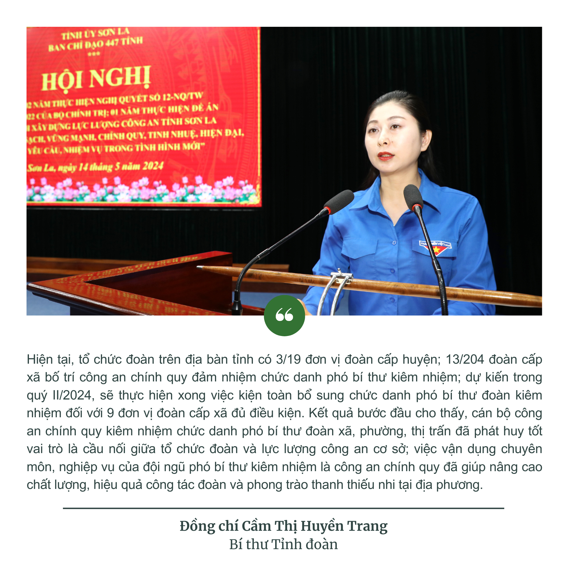 Ngày 14/5, Ban Chỉ đạo 447 Tỉnh ủy đã tổ chức Hội nghị sơ kết 2 năm thực hiện Nghị quyết số 12 NQ/TW, ngày 16/3/2022 của Bộ Chính trị khóa XIII về “Đẩy mạnh xây dựng lực lượng Công an nhân dân thật sự trong sạch, vững mạnh, chính quy, tinh nhuệ, hiện đại, đáp ứng yêu cầu, nhiệm vụ trong tình hình mới”; 1 năm thực hiện Đề án “Đẩy mạnh xây dựng lực lượng Công an tỉnh Sơn La thật sự trong sạch, vững mạnh, chính quy, tinh nhuệ, hiện đại, đáp ứng yêu cầu, nhiệm vụ trong tình hình mới”.