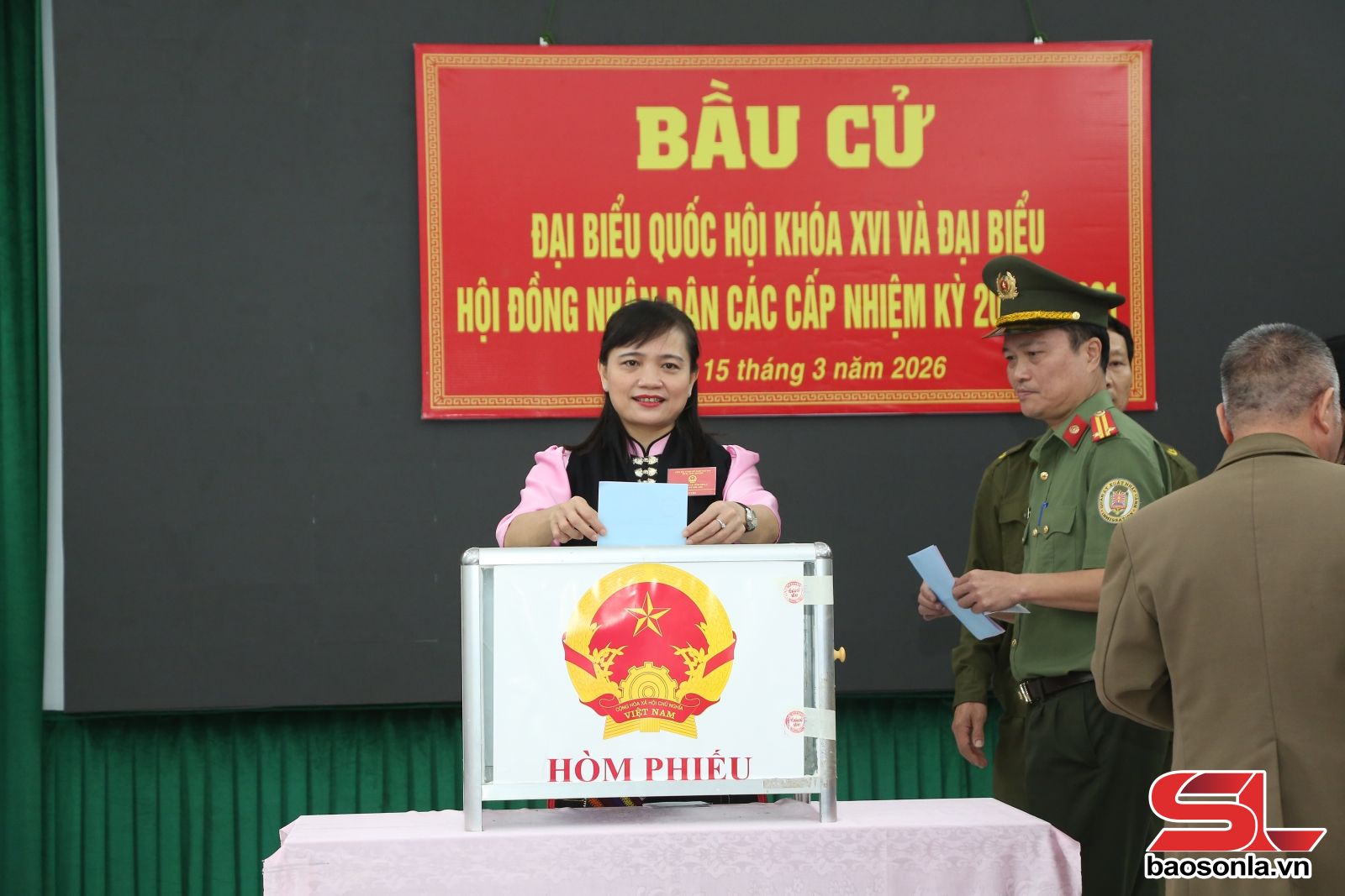 Sáng nay, xã Yên Châu rộn ràng không khí bầu cử với cờ Tổ quốc rực rỡ trên mọi tuyến đường. Từ sớm, cử tri các dân tộc Kinh, Thái, Khơ Mú... trên địa bàn đã tập trung đông đủ tại các điểm bỏ phiếu để thực hiện nghĩa vụ thiêng liêng. Dự lễ khai mạc và tham gia bỏ phiếu tại Tiểu khu 2 có đồng chí Lường Thị Vân Anh, Ủy viên Ban Thường vụ Tỉnh ủy, Trưởng ban Nội chính Tỉnh ủy.