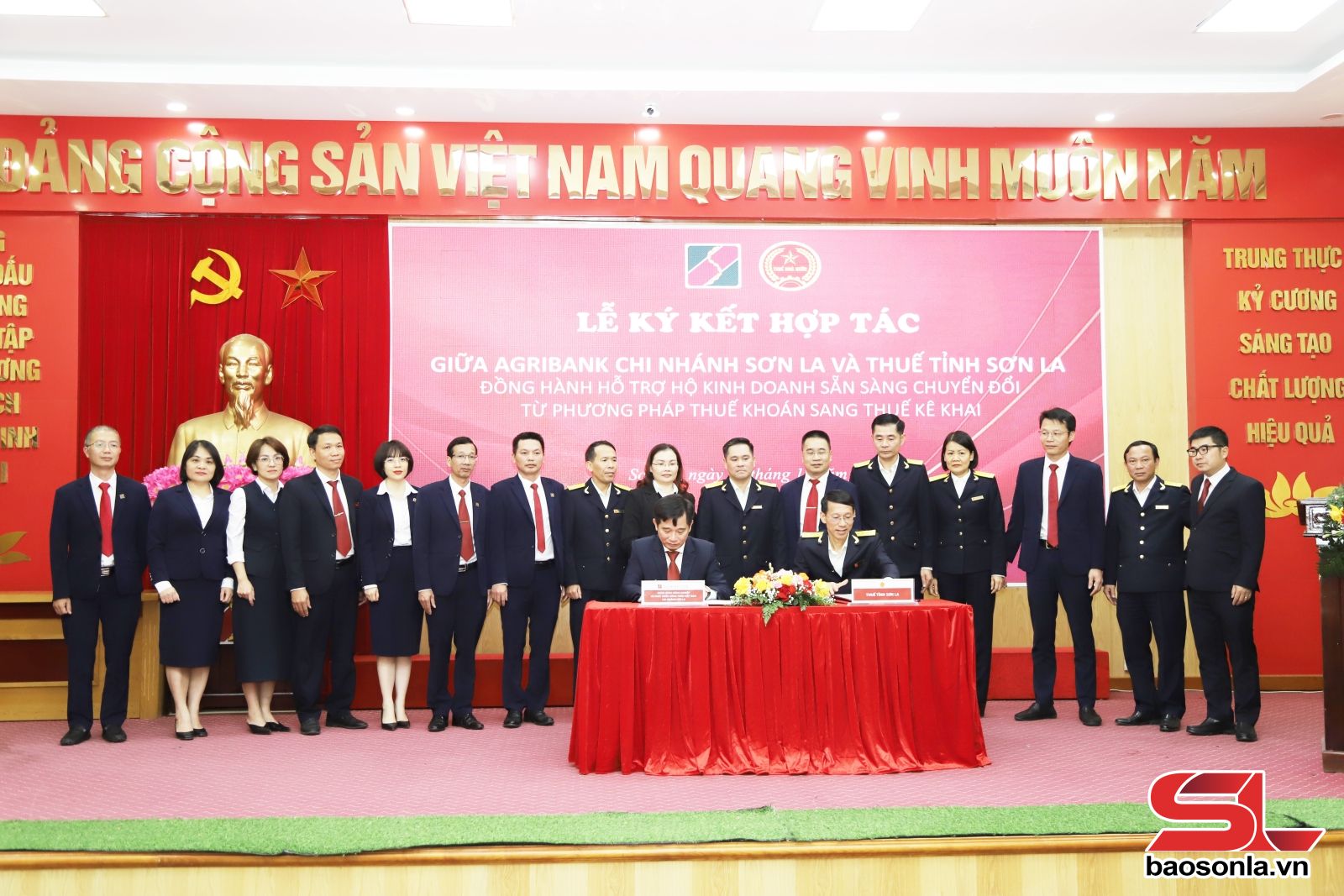 Ngày 3/12, Agribank Chi nhánh Sơn La và Thuế tỉnh Sơn La đã tổ chức Lễ ký kết hợp tác đồng hành, hỗ trợ hộ kinh doanh sẵn sàng chuyển từ phương pháp thuế khoán sang thuế kê khai.