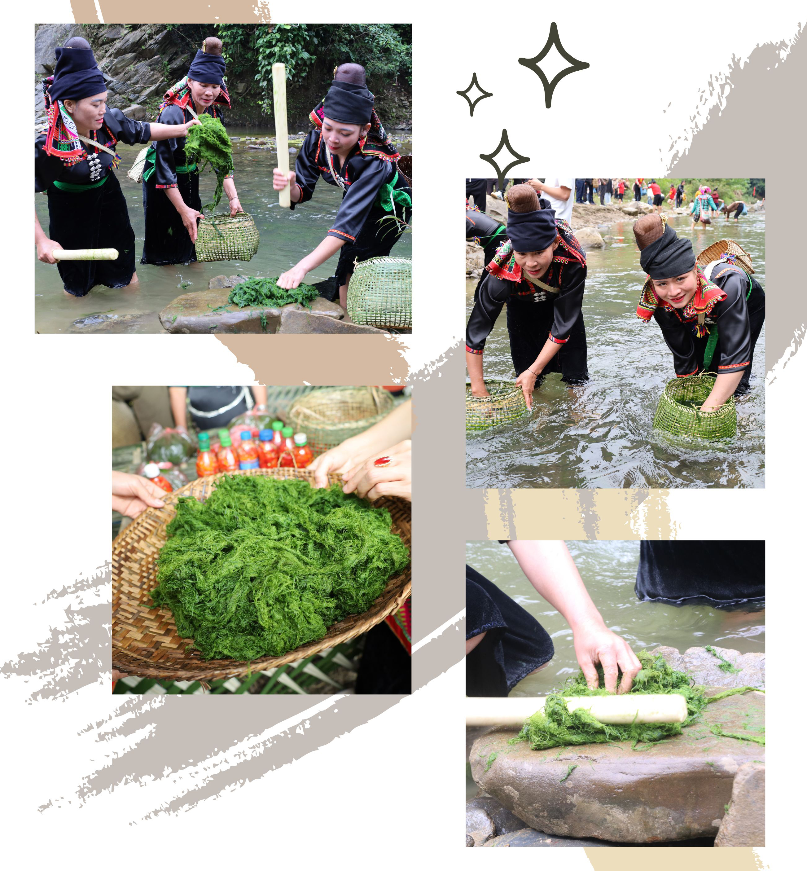 Trong không khí rộn ràng của ngày hội, hoạt động hái rêu diễn ra sôi nổi. Các đội thi khéo léo lội mình xuống dòng nước mát, chọn những tảng đá có đám rêu dài và xanh nhất để hái. Đôi tay của các bà, các chị thoăn thoắt lựa chiều nước chảy để tách từng dải rêu mà không làm nát, rũ sạch cát sỏi ngay dưới dòng suối. Từng nhóm người tham gia thi tài trong tiếng reo hò cổ vũ của du khách, tạo nên không khí vui tươi, phấn khởi cho ngày hội.