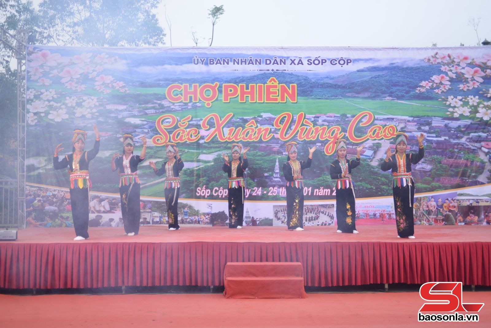 Tham gia chợ phiên có 20 gian hàng đến từ các HTX trên địa bàn xã Sốp Cộp và các xã lân cận Mường Lèo, Púng Bánh, Mường Lạn…, trưng bày, giới thiệu các sản phẩm nông sản, hàng thủ công truyền thống, ẩm thực đặc trưng vùng cao và các sản phẩm địa phương. UBND xã Sốp Cộp sẽ duy trì chợ phiên 1 tháng/lần để phát triển giao thương, thu hút khách du lịch đến tham quan. Trong khuôn khổ chợ phiên, còn diễn ra nhiều hoạt động văn hóa, thể thao dân gian, như: tham quan gian hàng, thi kéo co, đẩy gậy, bịt mắt bắt vịt, bắn nỏ…