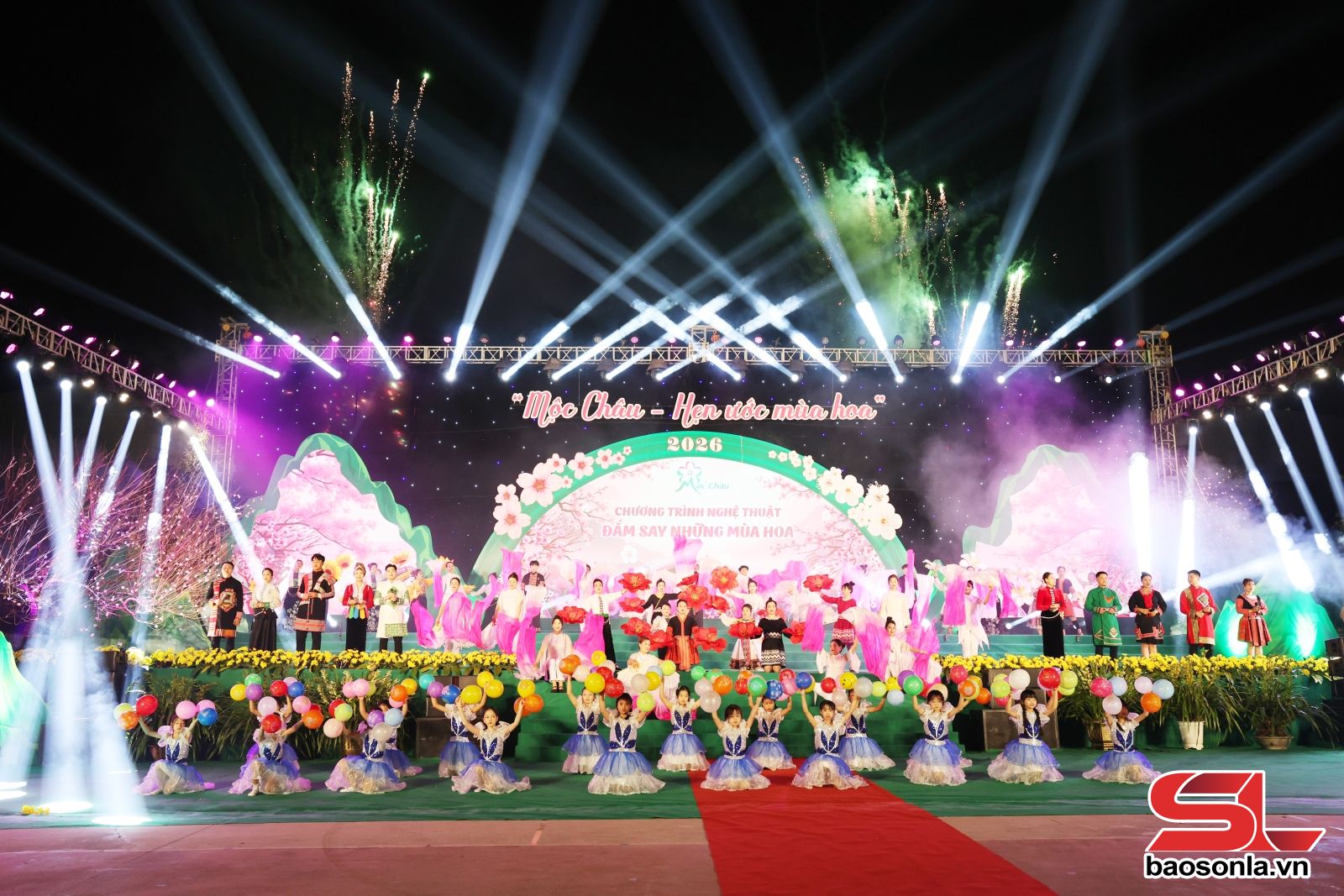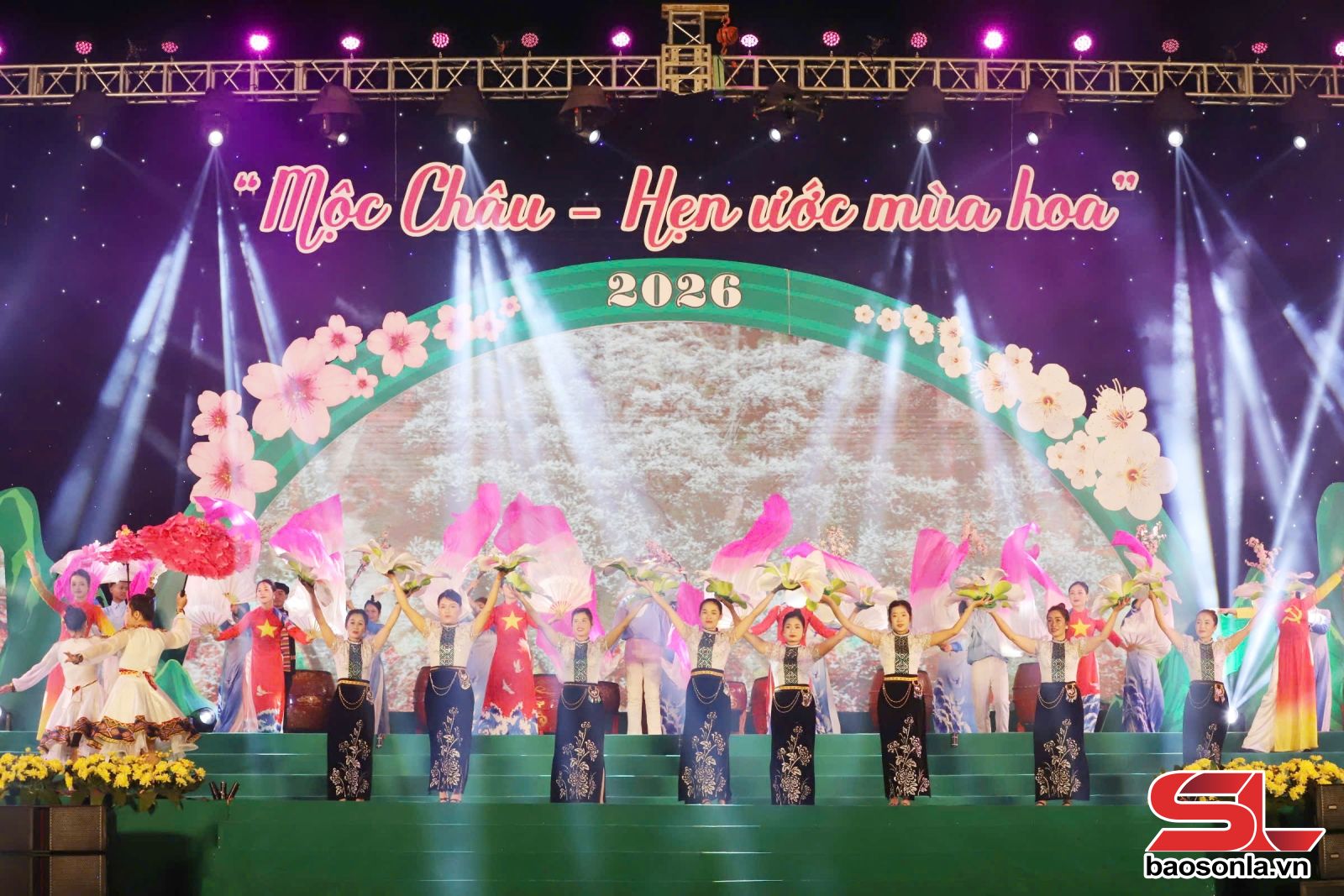 Ngay sau Lễ khai mạc Chương trình Du lịch năm 2026 với chủ đề "Mộc Châu - Hẹn ước mùa hoa" đã diễn ra Chương trình nghệ thuật “Mộc Châu đắm say mùa hoa”.