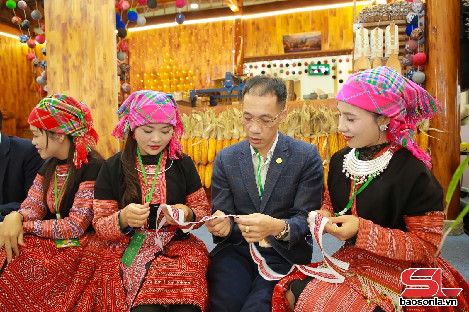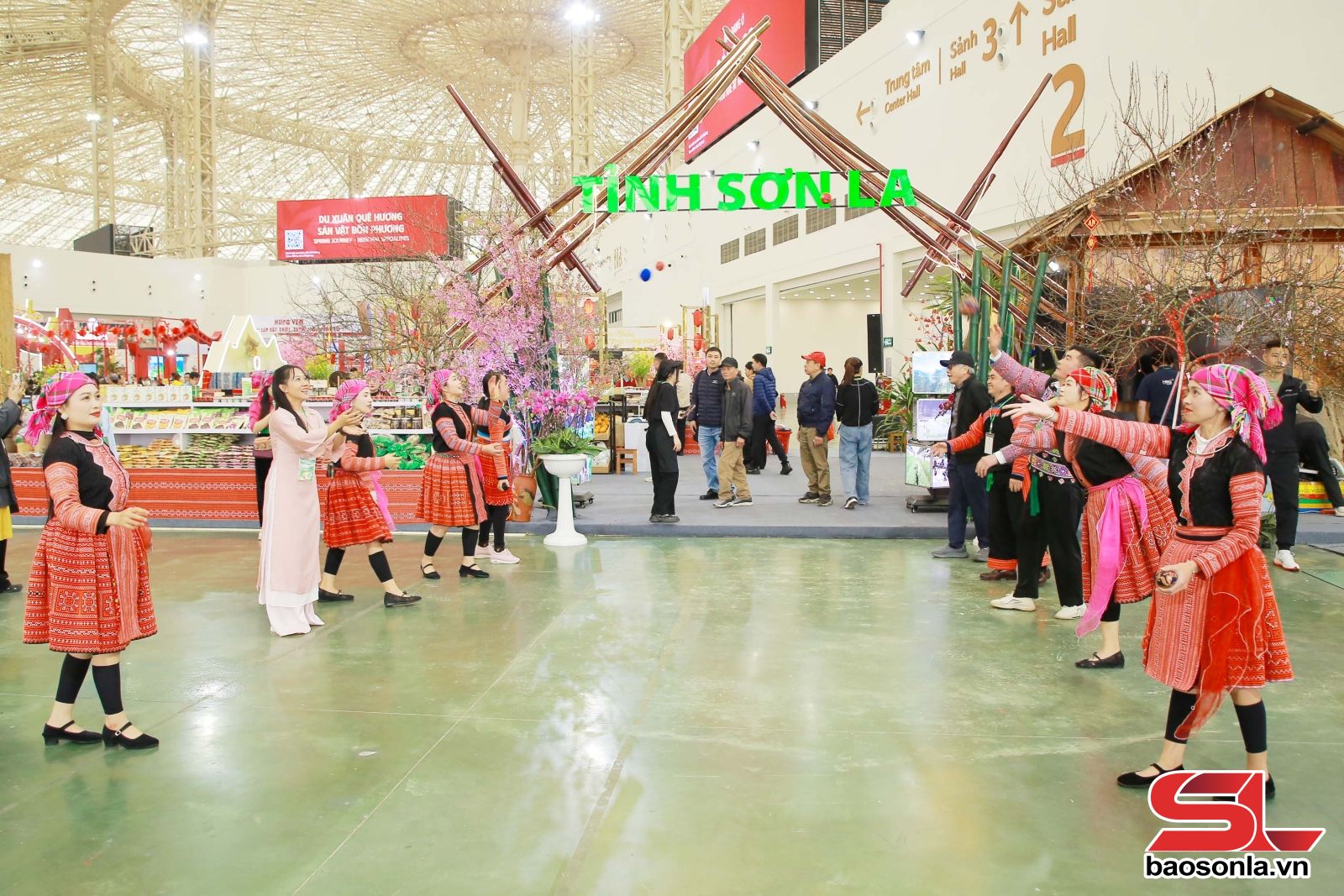 Không gian văn hóa đặc sắc mang đến không khí náo nhiệt, thu hút đông đảo nhân dân và du khách đến với gian hàng trưng bày của tỉnh Sơn La tại Hội chợ Mùa Xuân lần thứ nhất - năm 2026.