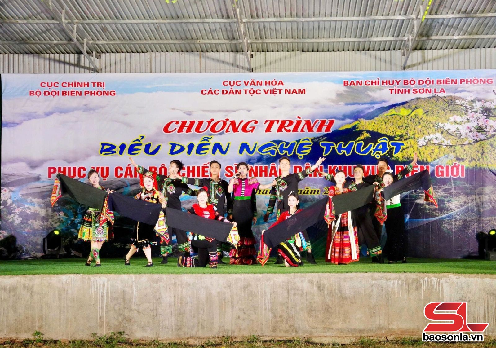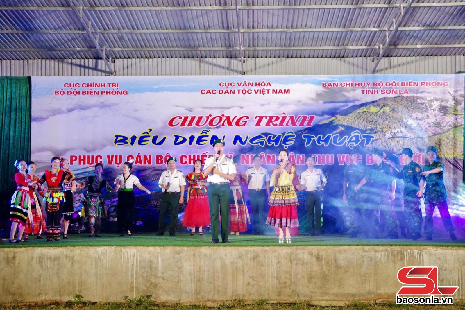 Tối 17/4, tại sân vận động xã Chiềng Sơn, Đoàn Văn công Bộ đội Biên phòng đã phối hợp với Cục Văn hóa dân tộc (Bộ Văn hóa, Thể thao và Du lịch), Ban Chỉ huy BĐBP tỉnh Sơn La tổ chức chương trình biểu diễn nghệ thuật phục vụ cán bộ, chiến sĩ và nhân dân trên địa bàn biên giới.