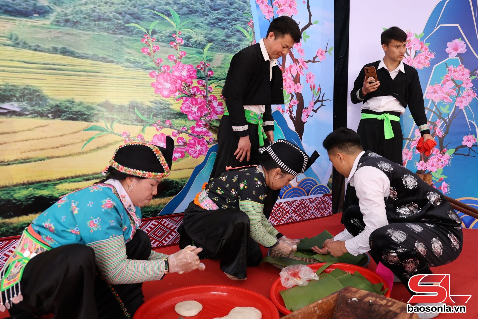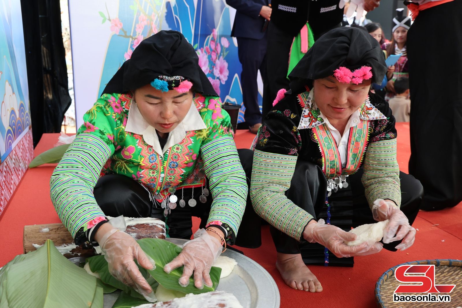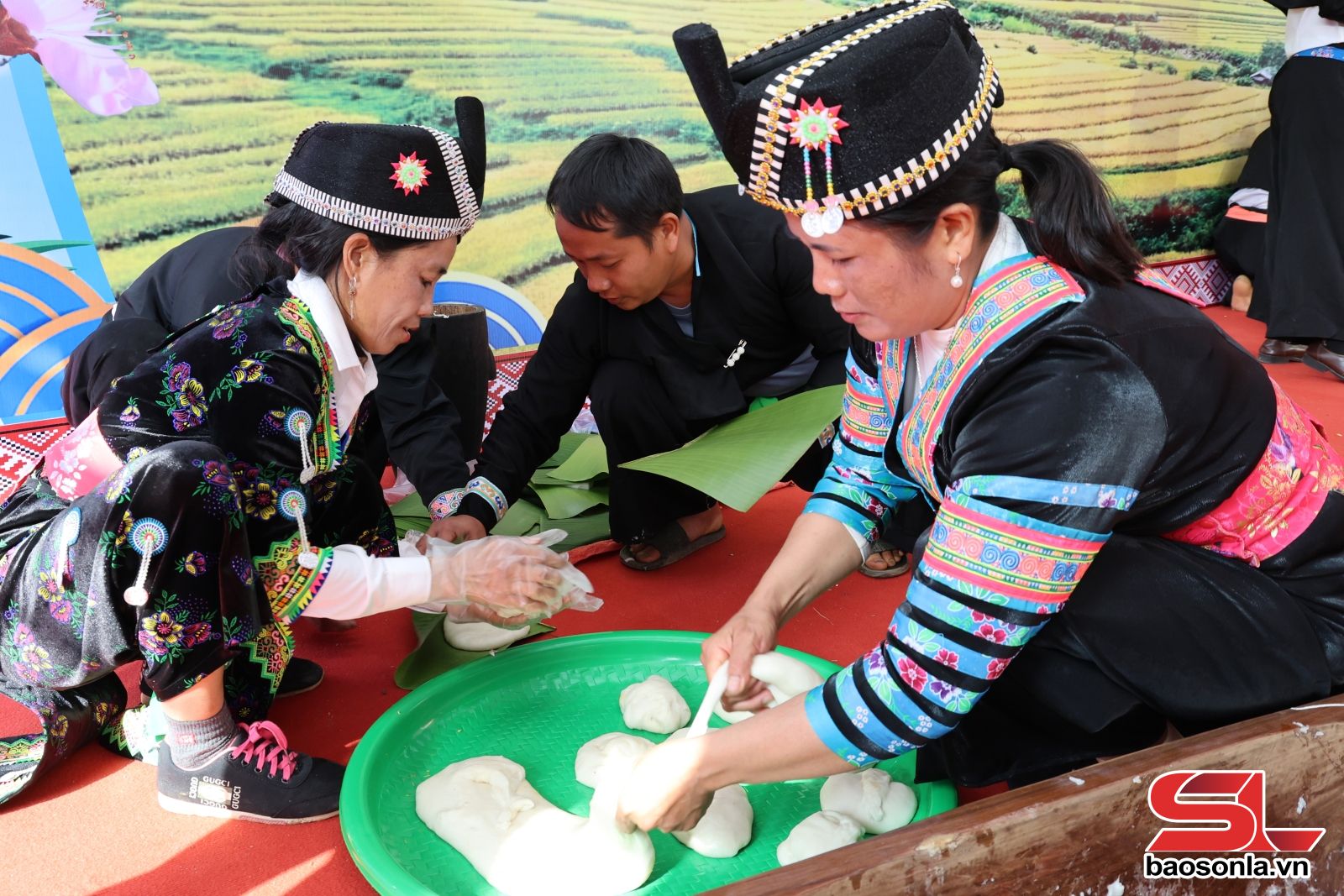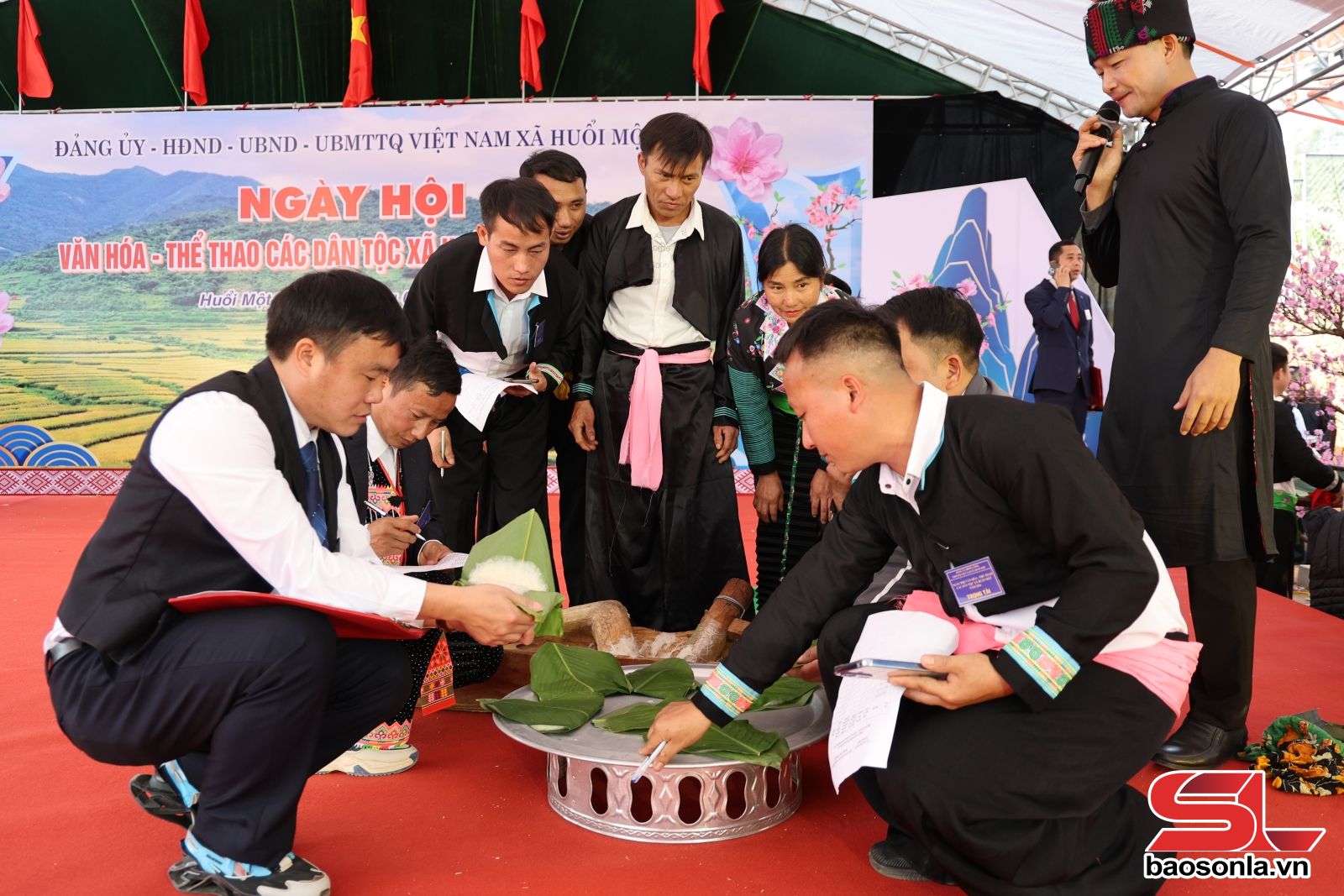 8 đội thi đến từ các bản trong xã, mỗi đội gồm 2 nam, 2 nữ trong trang phục truyền thống, tập trung chuẩn bị nguyên liệu, dụng cụ với sự háo hức, quyết tâm cao. Không khí cuộc thi diễn ra sôi nổi trong sự cổ vũ nhiệt thành của đông đảo khán giả.
