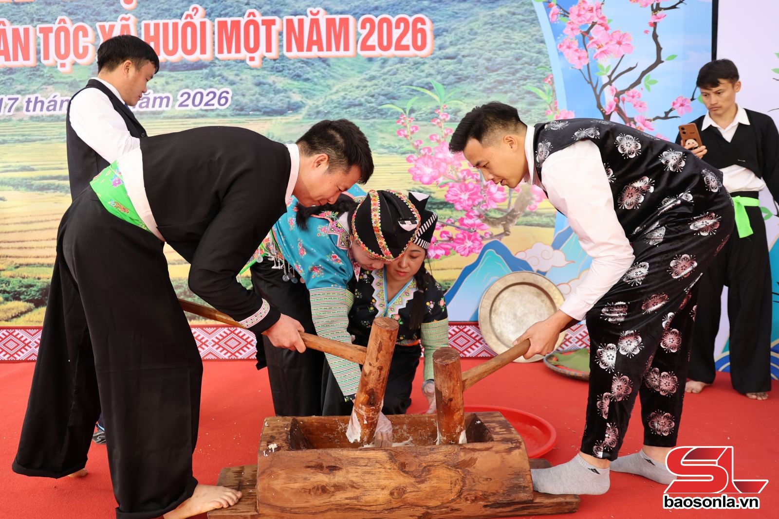 Trong chuỗi hoạt động của Ngày hội Văn hóa - Thể thao các dân tộc xã Huổi Một năm 2026, ngày 17/1, đã diễn ra phần thi giã bánh dày hết sức sôi động.