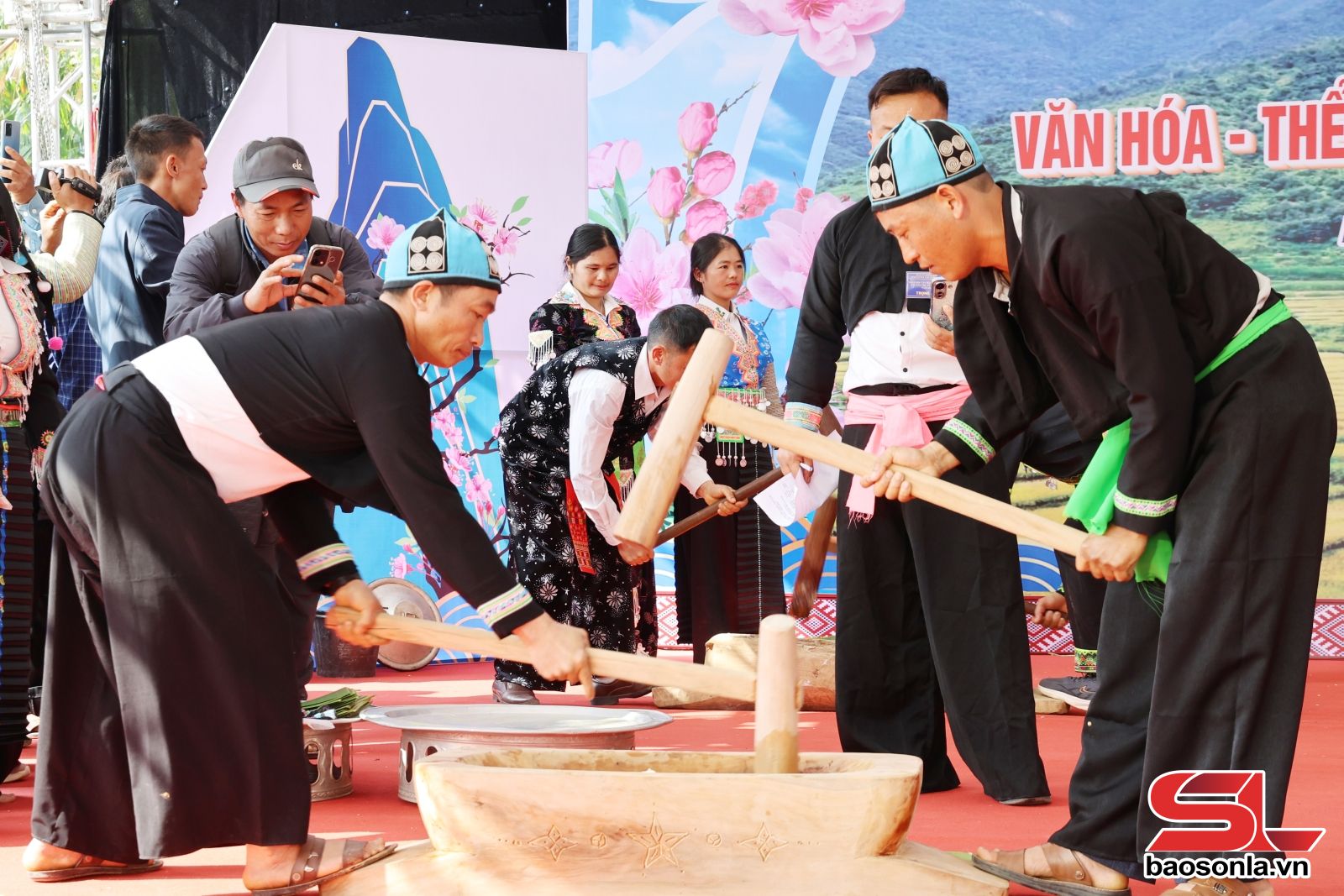 Nếp nương chín tới được thành viên các đội thi giã nhanh, đều tay, thể hiện sự khéo léo, thành thục và tinh thần đoàn kết của các thành viên. Các đội vừa giữ chuẩn thao tác, vừa tận dụng tối đa thời gian, nỗ lực hoàn thành phần thi sớm. Bánh làm ra bảo đảm độ dẻo, mịn theo đúng kỹ thuật truyền thống.