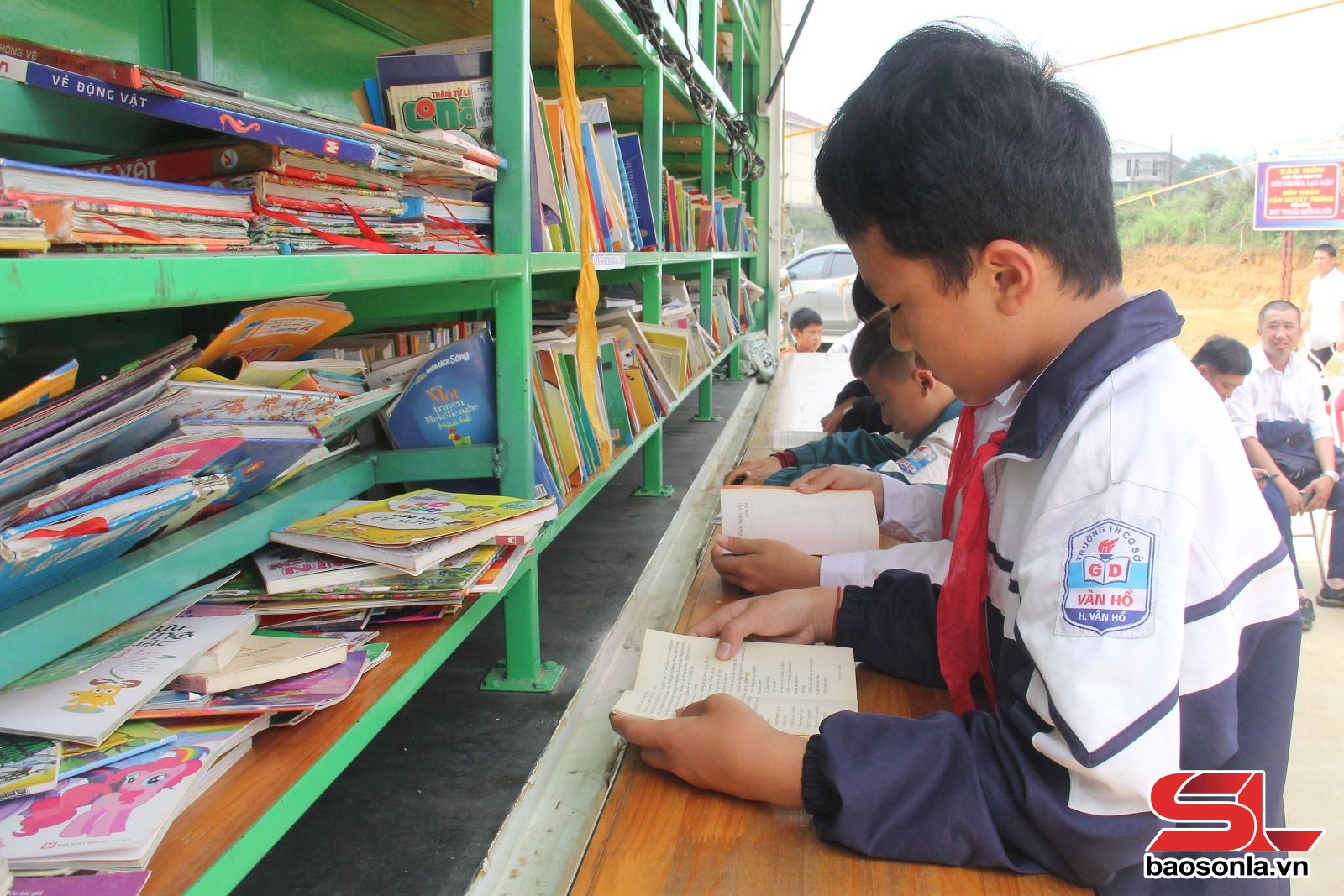 Em Lò Thị Phương Vy, học sinh Trường THCS Vân Hồ, xã Vân Hồ, nói: Em đã được đọc sách tại xe ô tô thư viện lưu động với rất nhiều sách hay, được các cô hướng dẫn chọn sách, đọc sách miễn phí. Em rất mong xe thư viện lưu động thường xuyên đến trường, để chúng em được đọc nhiều cuốn sách yêu thích, bổ ích hơn nữa.
