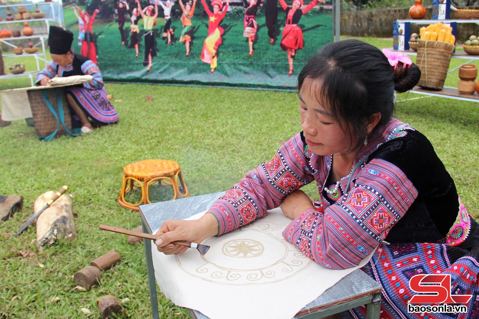 Trung tuần tháng 9 vừa qua, tại xã Vân Hồ, gameshow “Về bản em” đã thu hút đông đảo người dân và du khách. Trong đó, phần thi vẽ hoa văn trên vải bằng sáp ong đã trở thành điểm nhấn, thể hiện tài hoa của phụ nữ Mông.