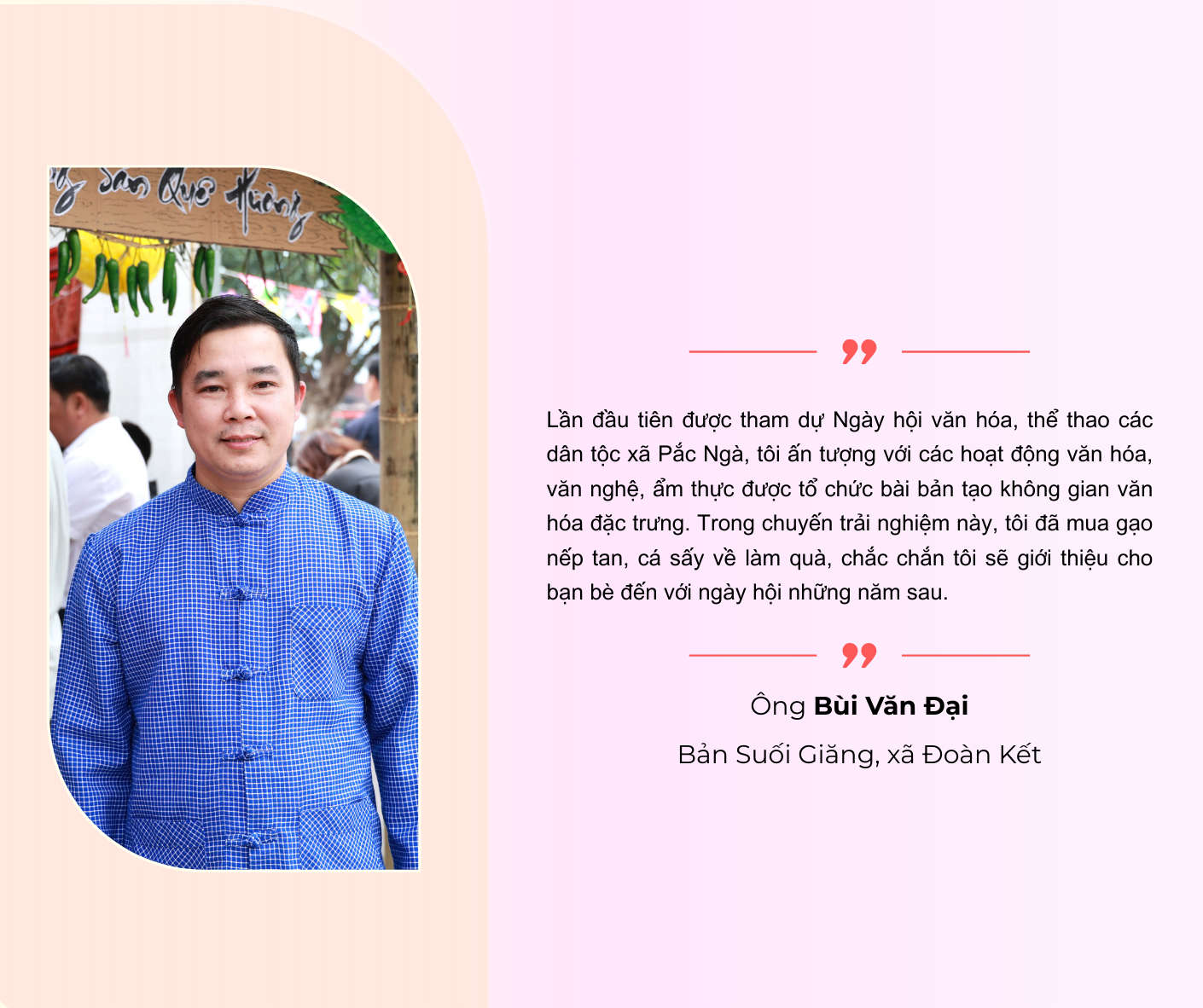 Chương trình giao lưu văn nghệ là điểm nhấn của ngày hội, các đội mang đến những tiết mục ấn tượng, với lời ca, điệu múa ca ngợi Đảng quang vinh, Bác Hồ kính yêu, khắc họa hành trình đổi mới của quê hương Pắc Ngà. Từ điệu xòe nhịp nhàng đến những khúc hát ca ngợi tình yêu lao động, tất cả đã tạo nên một bức tranh văn hóa rực rỡ, khẳng định niềm tin sắt son của đồng bào các dân tộc vào sự lãnh đạo của Đảng và công cuộc xây dựng quê hương