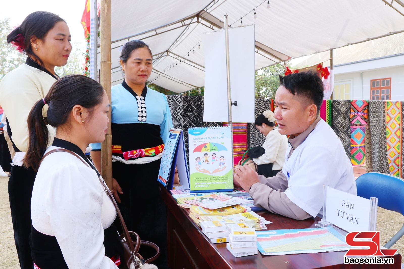 Trong không gian ngày hội, những trại văn hóa của các bản được dựng lên công phu, khéo léo từ vật liệu tự nhiên, trưng bày nông sản đặc trưng như gạo nếp tan thơm, măng khô, cá sấy, những sản phẩm mây tre đan… là thành quả của sự cần cù, chịu khó của bà con địa phương.