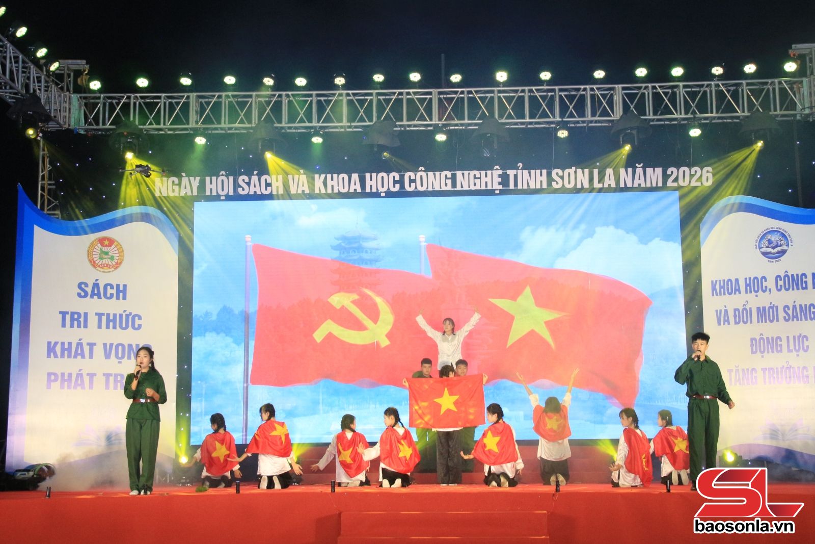 Cũng tại Ngày Sách và Khoa học Công nghệ tỉnh Sơn La năm 2026, khán giả còn được chứng kiến những màn hóa thân xuất sắc vào nhân vật văn học, lịch sử cùng với những màn biểu diễn ca nhạc kịch, hoạt cảnh với sân khấu, âm thanh, ánh sáng, tiếng động được dàn dựng công phu. Người xem bị cuốn hút bởi cách kể chuyện, các em học sinh hóa thân vào nhân vật, khiến tác phẩm “chạm” đến tầng sâu cảm xúc của khán giả. Tiêu biểu phải kể đến, như: Tiểu phẩm “Tức nước vỡ bờ’ (trích tác phẩm Tắt đèn của Ngô Tất Tố) do các em học Trường THPT Chuyên Sơn La thể hiện; tiểu phẩm “Chí Phèo” (Nam Cao) của Trường THPT Tô Hiệu, tiểu phẩm “Những ngôi sao xa xôi” (Lê Minh Khuê) của Trường TH, THCS và THPT Quốc tế Bình Minh hay các hoạt cảnh ấn tượng về sự kiện lịch sử, như: “Ký ức Đồng Lộc - Những đóa hoa bất tử” của Trường PTDT nội trú tỉnh...