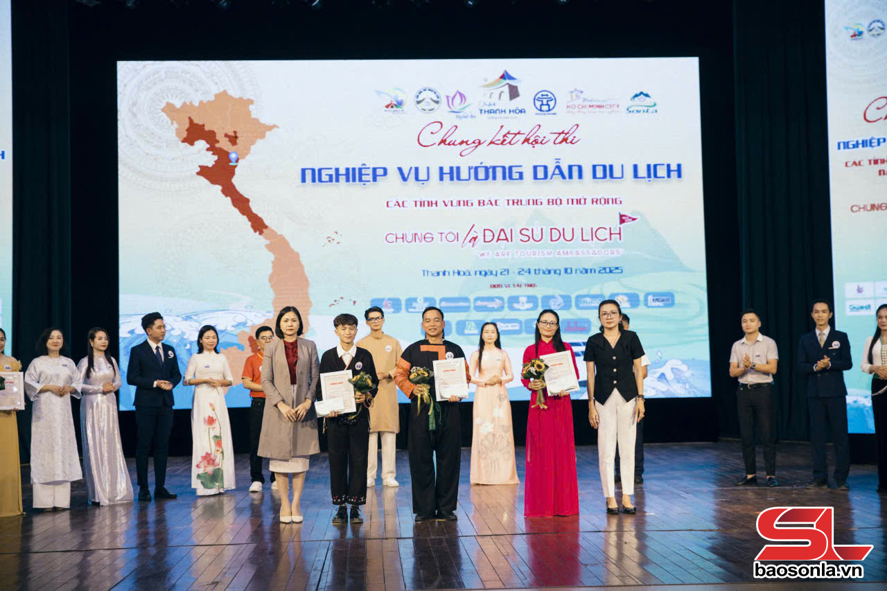 Từ ngày 22-23/10, tại tỉnh Thanh Hóa đã diễn ra Hội thi nghiệp vụ hướng dẫn viên du lịch các tỉnh Bắc Trung Bộ mở rộng năm 2025. Đoàn thí sinh tỉnh Sơn La đã xuất sắc giành một giải Nhất cùng nhiều giải thưởng phụ ấn tượng.