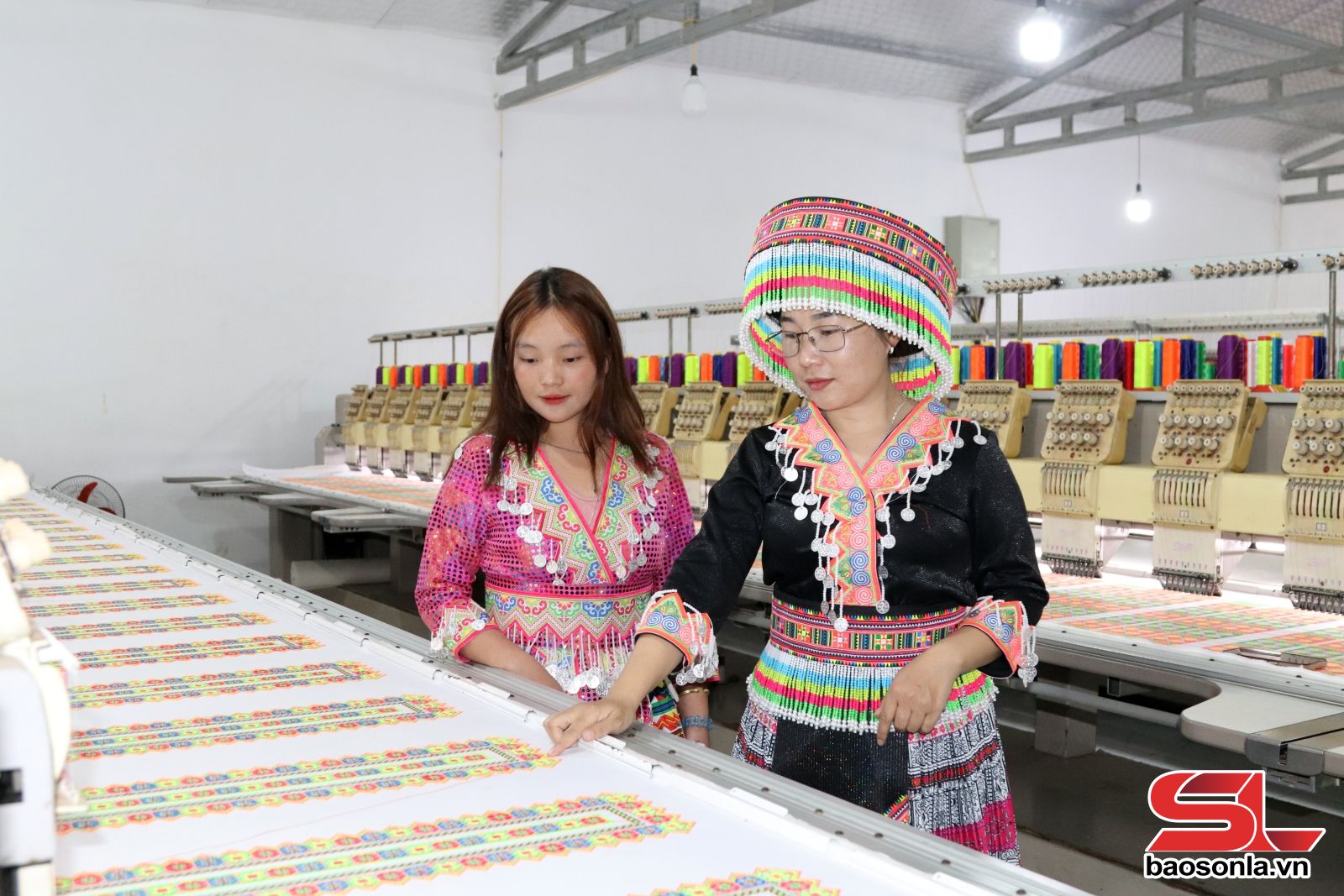 Hiện nay, trên địa bàn tỉnh có nhiều chị em phụ nữ dân tộc Mông kinh doanh thổ cẩm dân tộc như ở các xã: Phù Yên, Vân Hồ, Thuận Châu, Co Mạ, Mai Sơn, Phiêng Pằn, Bắc Yên, Sốp Cộp… Với số lượng khách mua sản phẩm dân tộc Mông ngày càng lớn, nhiều hộ gia đình đã đi học hỏi, đầu tư các trang thiết bị máy thêu hiện đại, với giá 300 triệu đồng/dàn máy thêu. Việc đầu tư máy may, thêu hiện đại vừa giảm nhân công, chi phí, lại đảm bảo thời gian, tiến độ thực hiện sản phẩm đi gửi cho khách hàng theo nhu cầu.