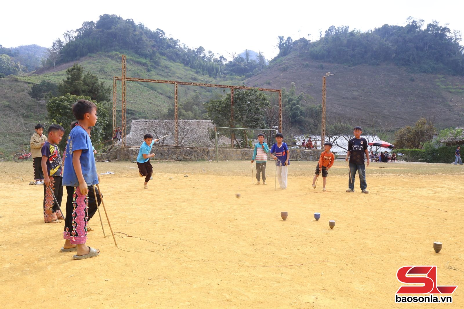 Vượt qua con dốc 64, bản Chiềng Đi hiện ra yên bình và thơ mộng. Trên khoảng sân rộng giữa bản, những cậu bé dân tộc Mông hồn nhiên nô đùa, say sưa với trò chơi tu lu truyền thống, âm thanh va chạm giòn tan như đánh thức cả không gian bản làng ngày xuân.