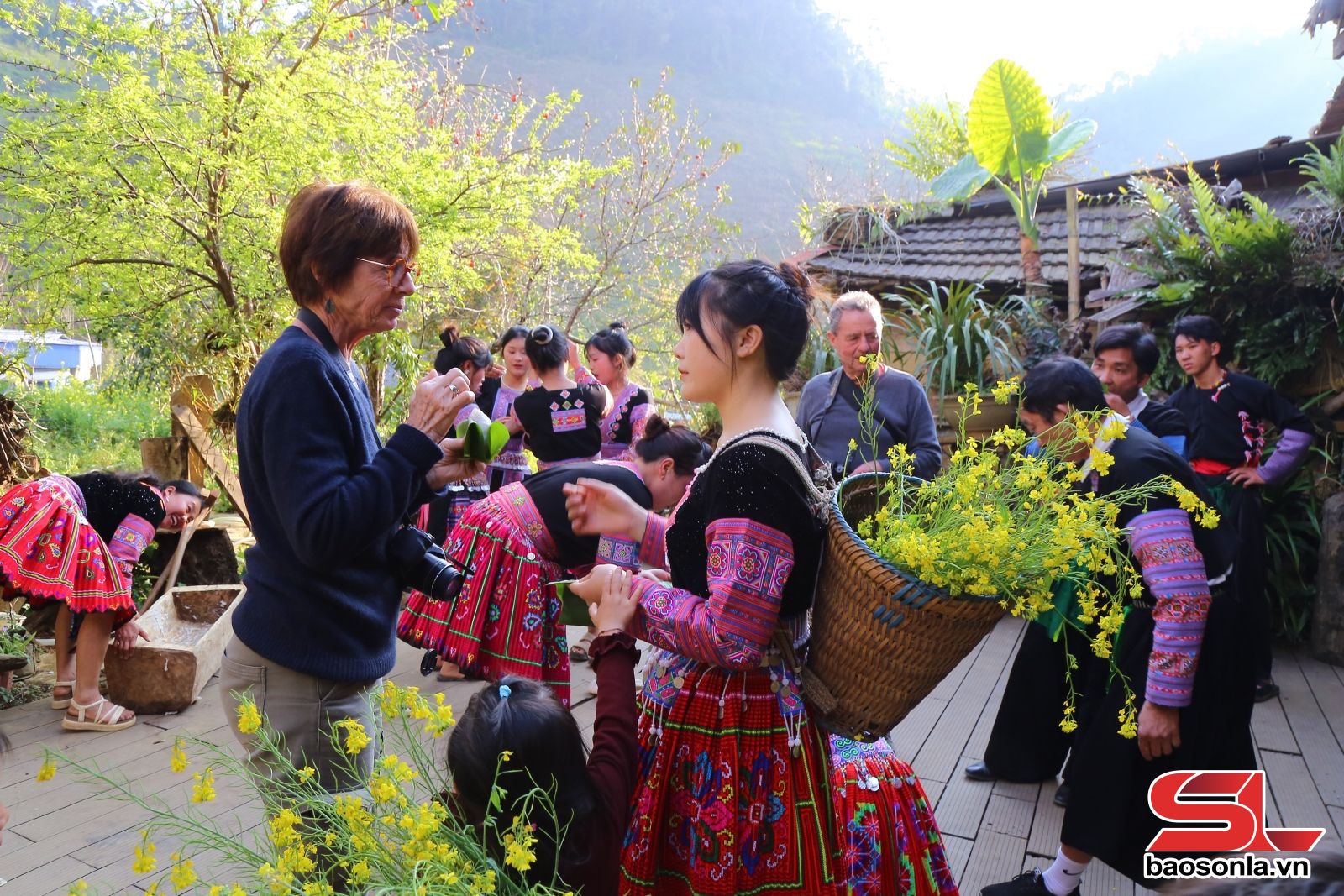 Từ Chiềng Đi, chúng tôi tiếp tục theo quốc lộ 6 về bản Hua Tạt, một trong những điểm sáng du lịch cộng đồng của xã Vân Hồ. Trên con đường bê tông sạch đẹp dẫn vào bản, anh Hạng A Tơ đang hướng dẫn các đoàn “khách Tây” tham quan phong cảnh, trải nghiệm nghề làm giấy dó và vẽ sáp ong. Vừa đi, anh vừa giới thiệu lưu loát bằng tiếng Anh về đời sống sinh hoạt của đồng bào Mông nơi đây, từ nghề làm giấy dó đến kỹ thuật vẽ sáp ong trên vải - những giá trị văn hóa được gìn giữ và trao truyền qua nhiều thế hệ.