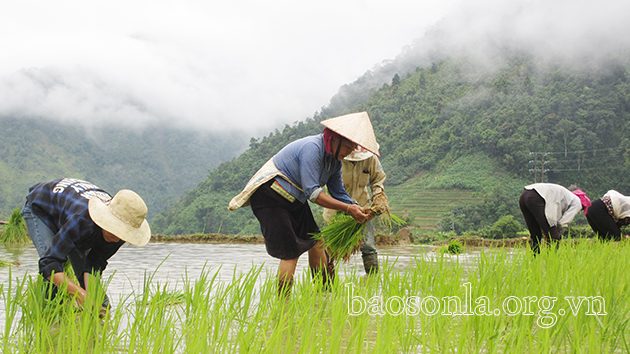 Người dân bản Ít cấy lúa theo hình thức đổi công.