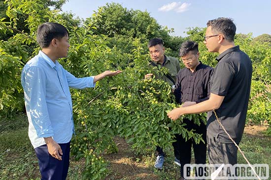 Đại diện UBND xã Chiềng Đen cùng các đơn vị khảo sát thực tế tại vườn mận.