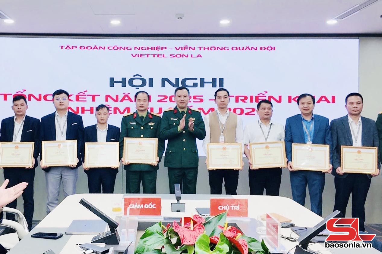 Nhân dịp này, Viettel Sơn La đã khen thưởng 10 tập thể hoàn thành xuất sắc nhiệm vụ năm 2025; công nhận danh hiệu Chiến sỹ thi đua cho 5 cá nhân hoàn thành tốt các mặt công tác, tiêu biểu trong phong trào thi đua quyết thắng năm 2025.