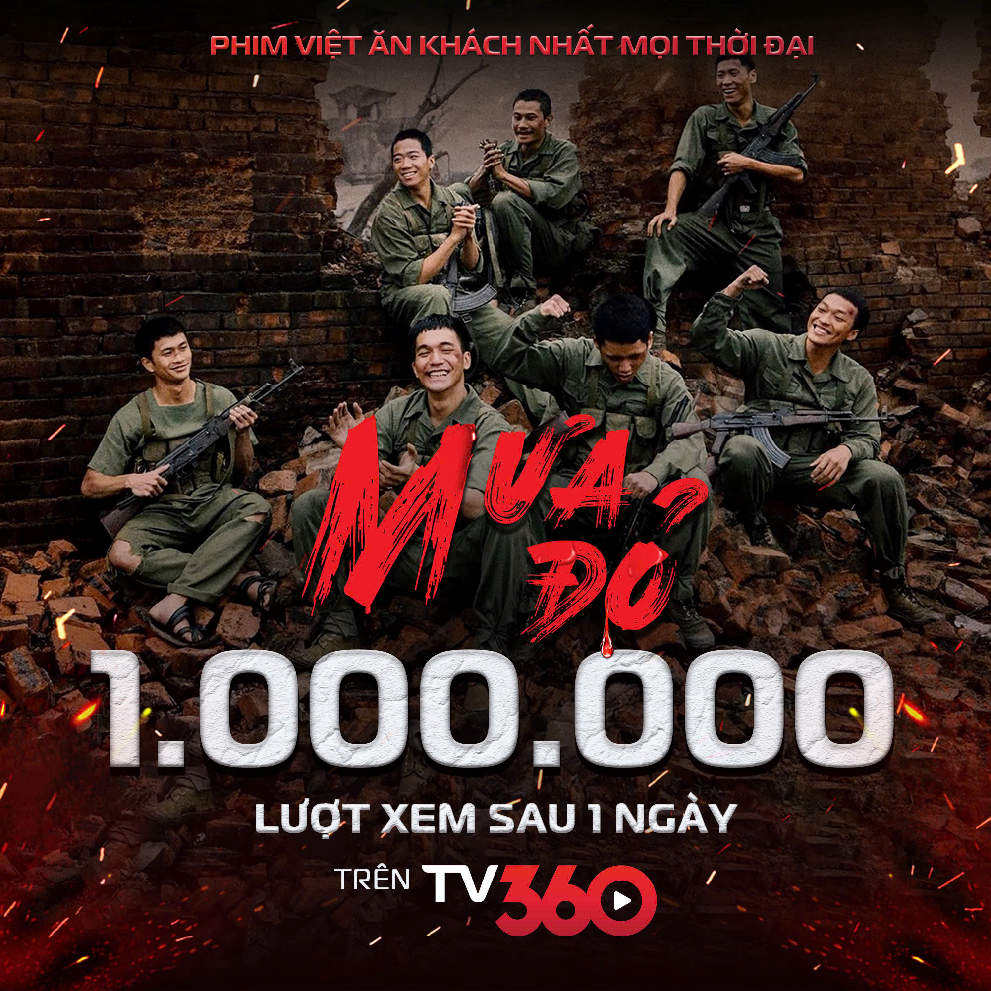 Bộ phim điện ảnh “Mưa đỏ” thu hút 1 triệu lượt xem chỉ trong 24 giờ sau khi được phát sóng miễn phí trên nền tảng TV360 của Viettel.