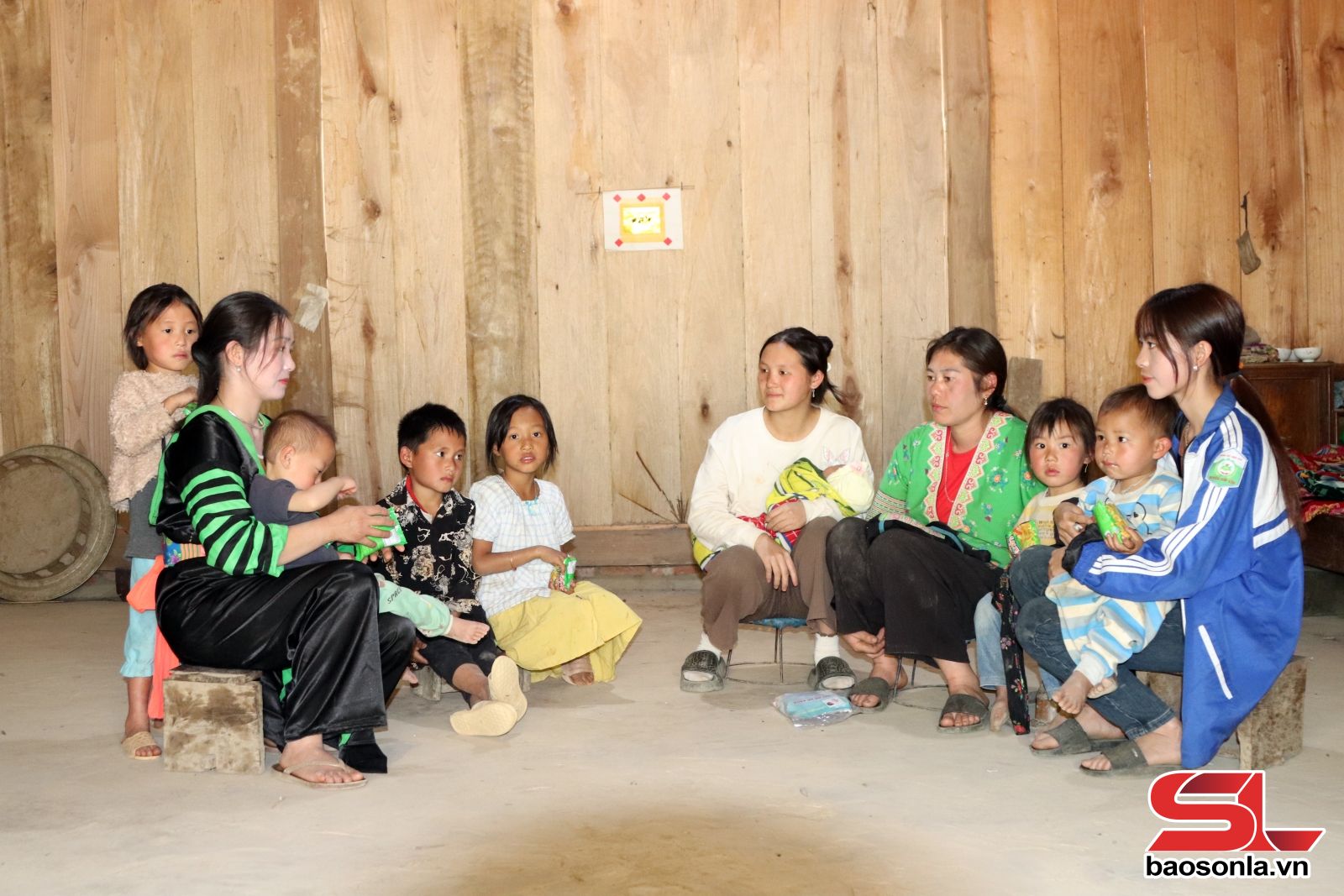 Đến điểm dân cư Chiềng Ân, xã Chiềng Hoa, nơi có những bản làng vùng cao “chồn chân vó ngựa”, cuộc sống khó khăn hiện hữu trong mỗi nếp nhà, những đứa trẻ chân trần, quần áo lấm lem bùn đất và gương mặt vẫn còn vẻ ngơ ngác của những bà mẹ chưa đến tuổi thành niên.