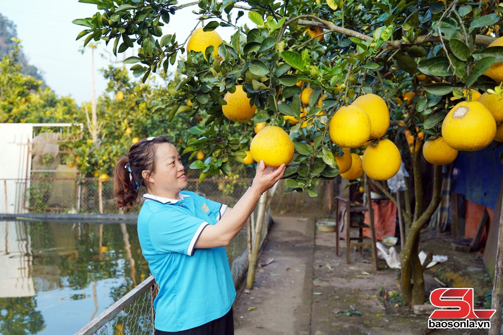 Nông dân bản Kiến Xương, xã Bình Thuận kiểm tra chất lượng cây ăn quả trước khi thu hoạch.
